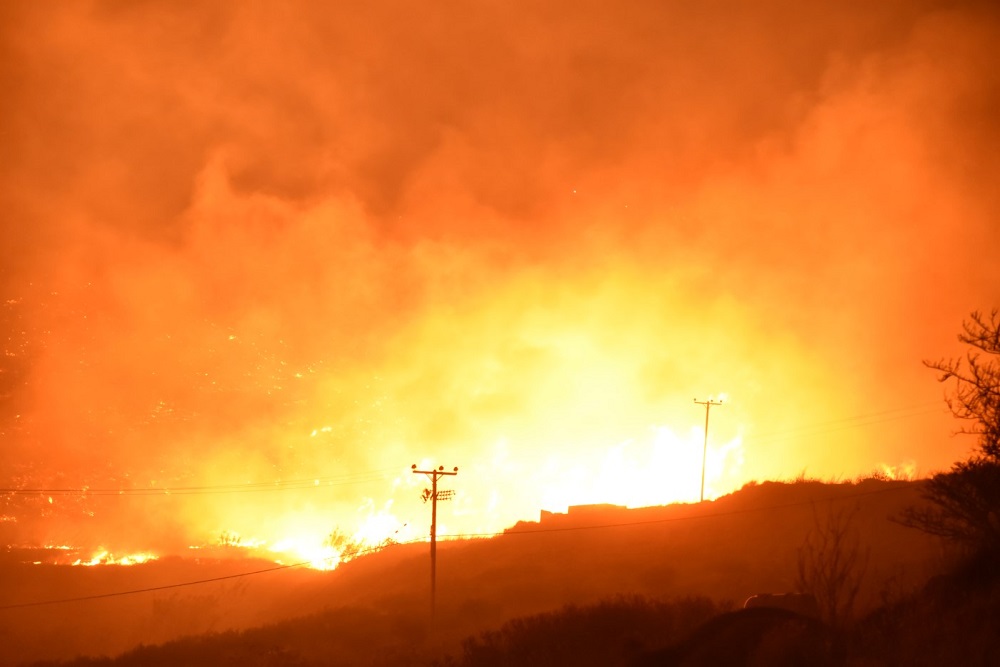 Ραγδαία ήταν η εξάπλωση της φωτιάς, η οποία μία ώρα αργότερα κατευθυνόταν προς τα Άδειατα