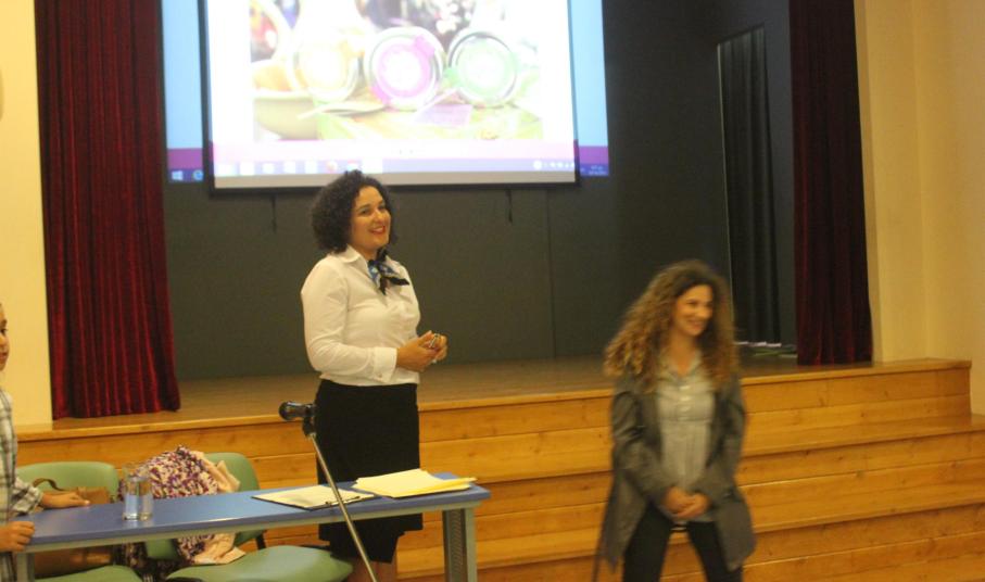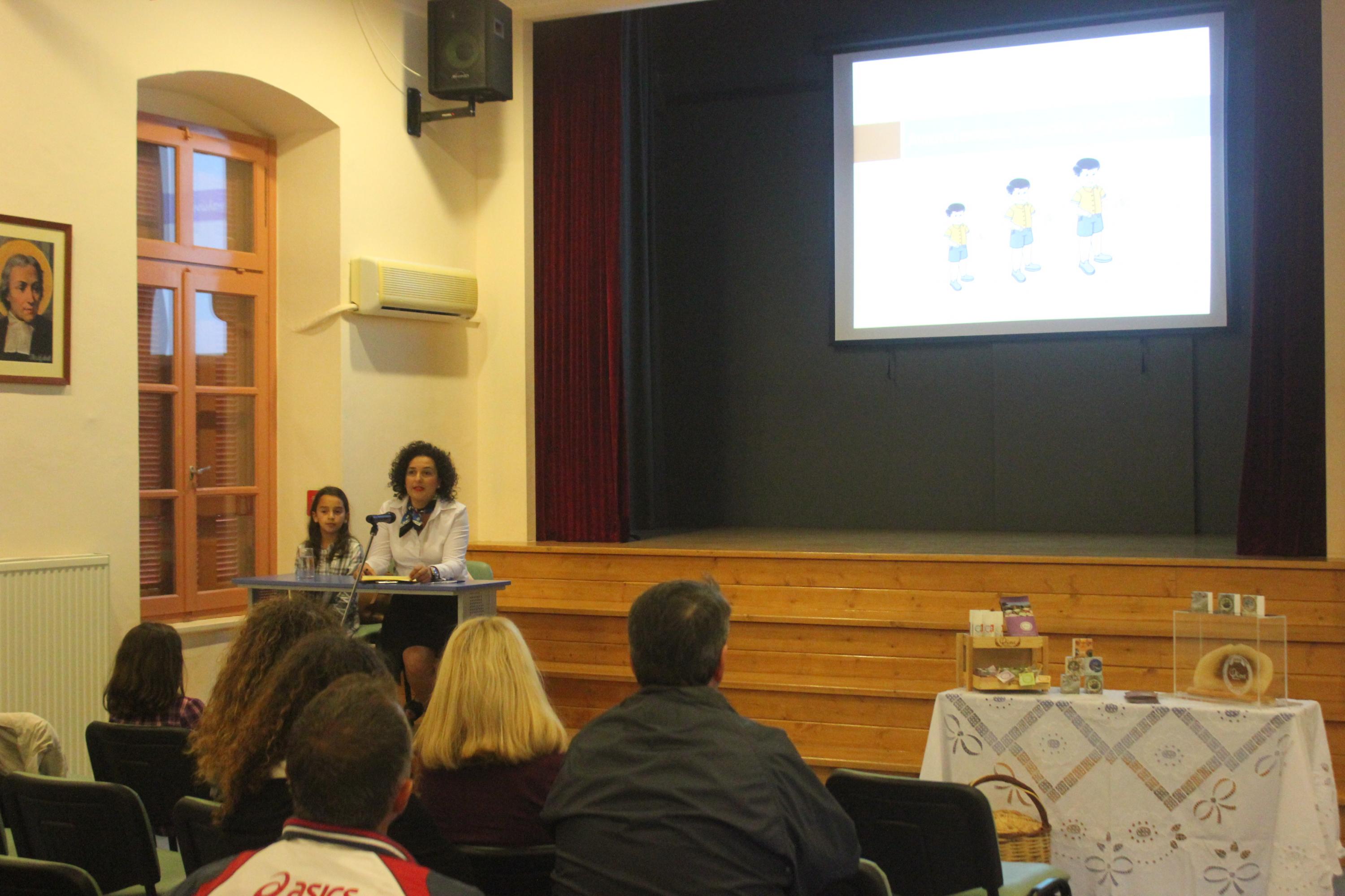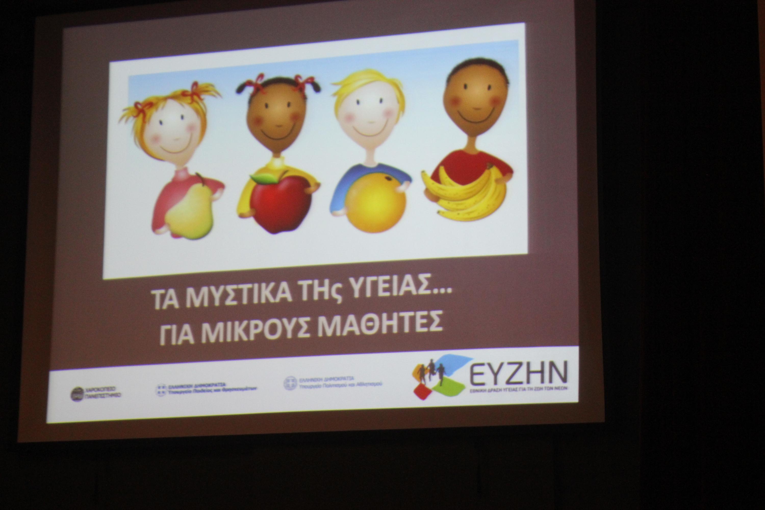Η ομιλία πραγματοποιήθηκε στην αίθουσα ΔΕΛΑΣΑΛ του σχολείου, στο πλαίσιο του ΕΥΖΗΝ (Εθνική Δράση Υγείας για τη ζωή των νέων) και του μήνα πρόληψης της παχυσαρκίας και προβολής της υγιεινής διατροφής.