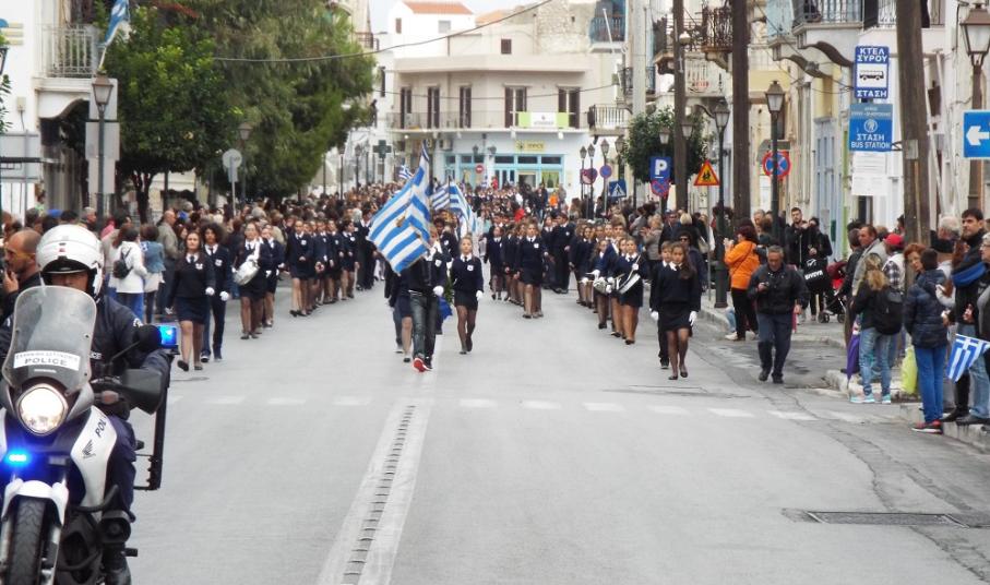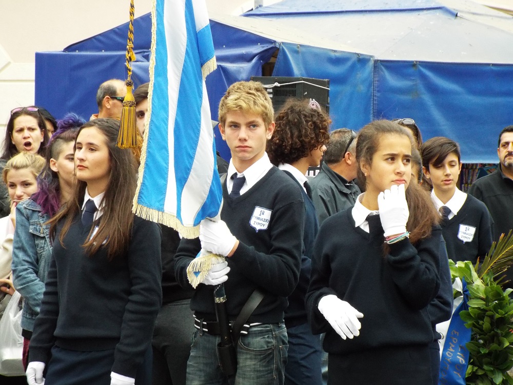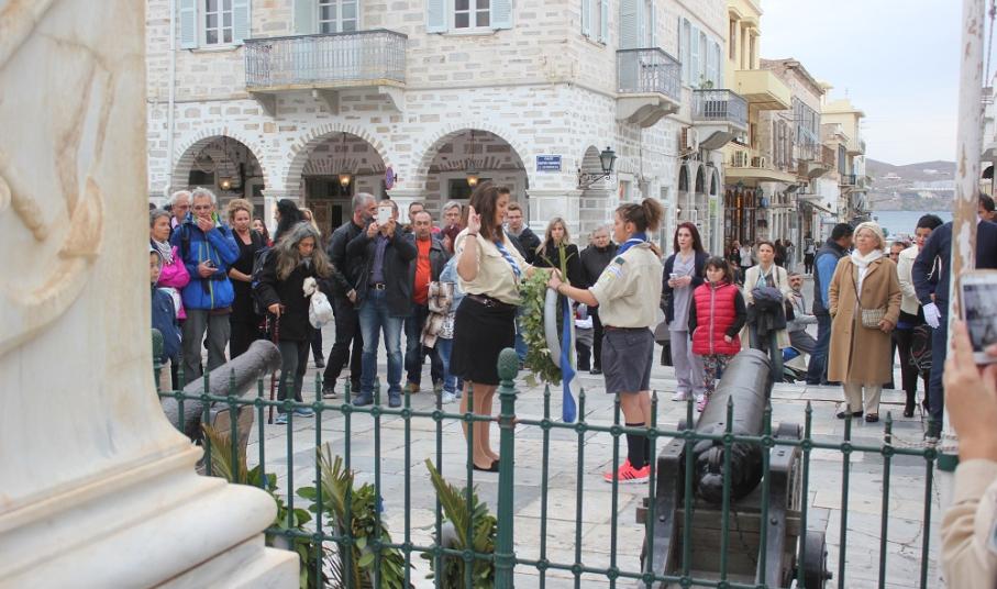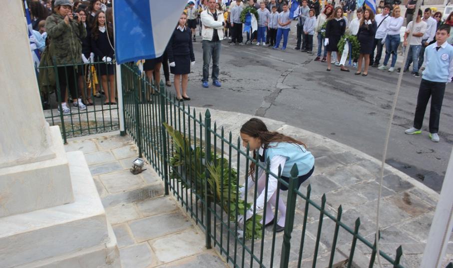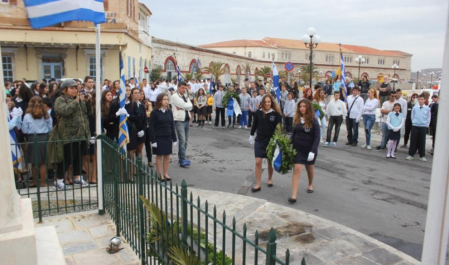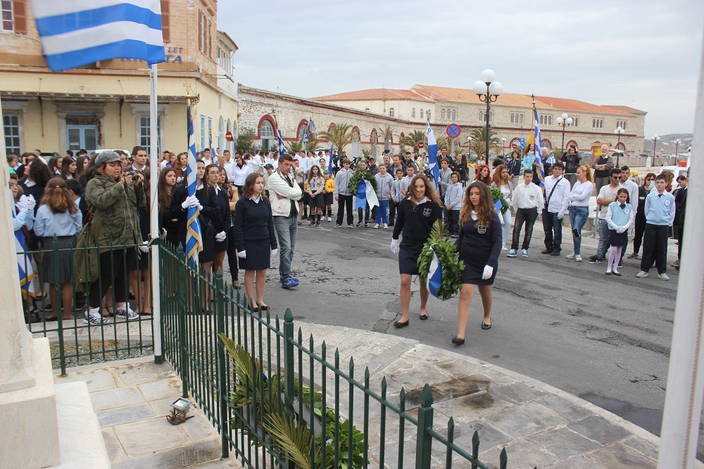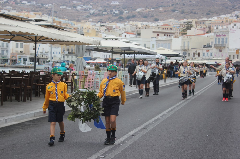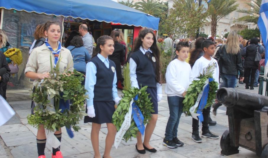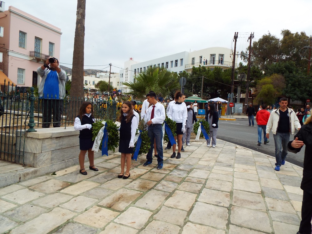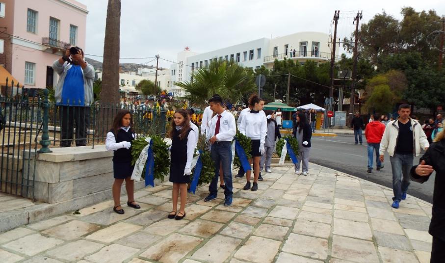 Υπερήφανα και διατηρώντας υψηλό το αίσθημα σεβασμού προς την ηρωική αντίσταση των Ελλήνων που αγωνίσθηκαν το 1940, προχώρησαν στην καθιερωμένη στεφάνωση οι μαθητές όλων των βαθμίδων της Πρωτοβάθμιας και Δευτεροβάθμιας Εκπαίδευσης, το Σώμα Ελλήνων Προσκόπων, σπουδαστές της ΑΕΝ Σύρου καθώς και εκπρόσωποι του Ναυτικού Ομίλου Σύρου.