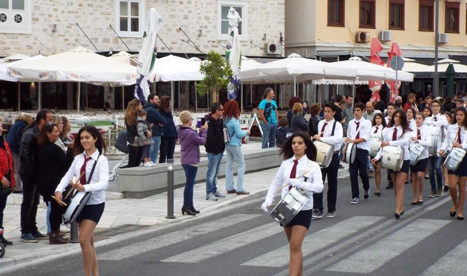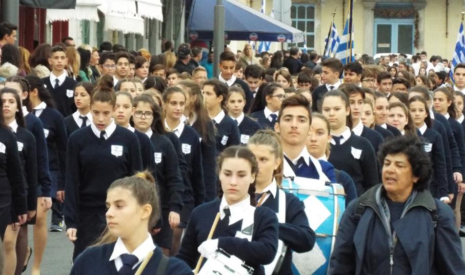 Ενόψει της αυριανής κορύφωσης των επετειακών εκδηλώσεων και της παρέλασης για την εθνική εορτή της 28ης Οκτωβρίου, σήμερα, το σύνολο των συμμετεχόντων κατέθεσε στεφάνια στα μνημεία της πόλης, αποσπώντας το θερμό χειροκρότημα των πολιτών, γονέων και φίλων τους, που παρά τη βαριά συννεφιά παρακολούθησαν απρόσκοπτα την παρέλαση των μαθητών.