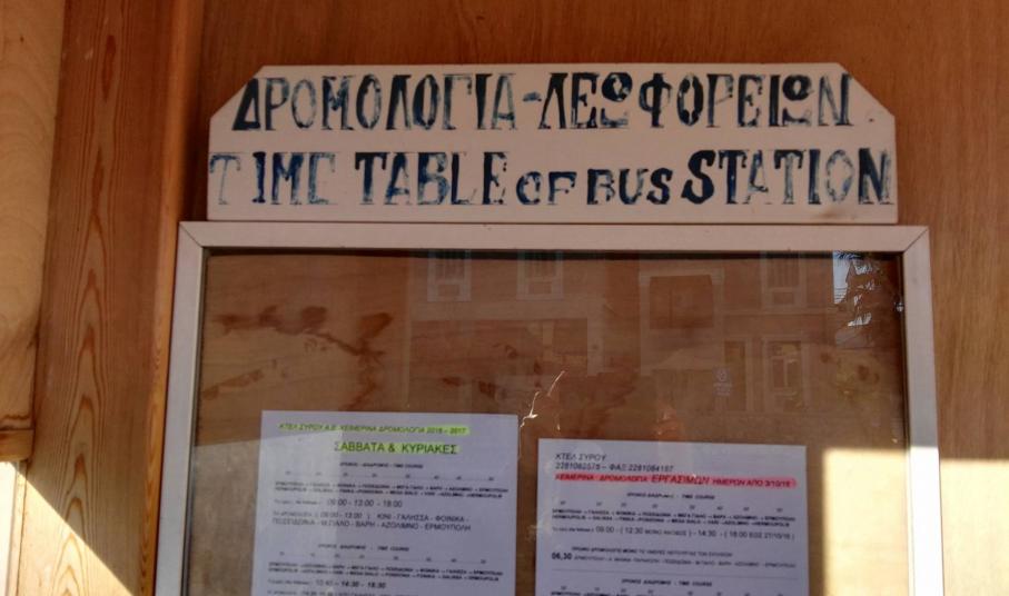 Εικόνα που ούτε κατ΄ ελάχιστον δεν αποπνέει τη “φρεσκάδα” μίας νέας αφετηρίας λεωφορείων χαρακτηρίζει το διαθέσιμο τμήμα της παραλιακής πλευράς, στο οποίο και μεταφέρθηκε ο χώρος αναμονής των επιβατών της ΚΤΕΛ Σύρου Α.Ε., μετά τις αλλαγές που προέκυψαν από το έργο της ανάπλασης.
