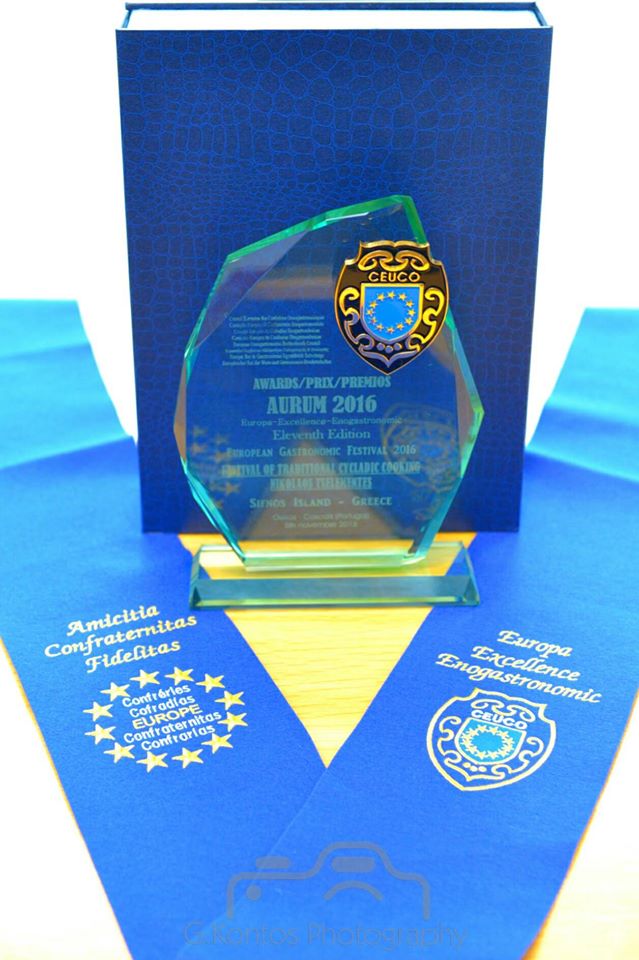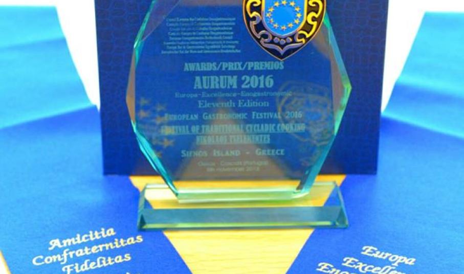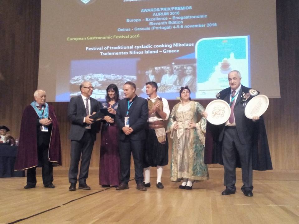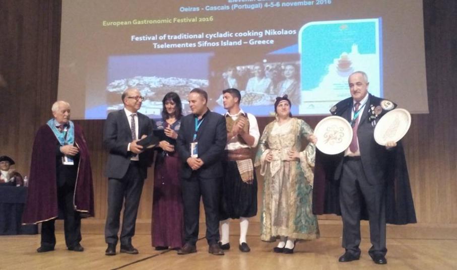 Το χρυσό βραβείο καλύτερου Γαστρονομικού Φεστιβάλ της Ευρώπης για το 2016 απονεμήθηκε το περασμένο Σάββατο στον Πολιτιστικό Σύλλογο Σίφνου για το Φεστιβάλ Κυκλαδικής Γαστρονομίας «Νικόλαος Τσελεμεντές».