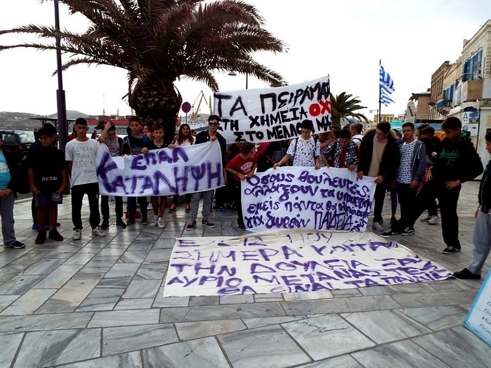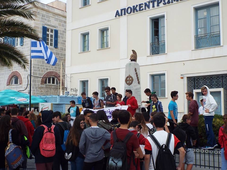 Λίγο μετά τις 11, ακολούθησε πορεία στο κέντρο της πόλης, με κατάληξη στην πλατεία Μιαούλη. Οι μαθητές της Σύρου ένωσαν τη φωνή τους με τα σχολεία όλης της χώρας, ζητώντας άμεση αντιμετώπιση των λειτουργικών προβλημάτων τους και κατ’ επέκταση καλύτερες συνθήκες παιδείας και μόρφωσης.