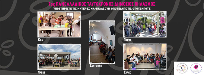 Στο πλαίσιο του εορτασμού της Παγκόσμιας Εβδομάδας Μητρικού Θηλασμού*, το Πανελλήνιο Δίκτυο Εθελοντικών Ομάδων Υποστήριξης Μητρικού Θηλασμού και Μητρότητας,#thilaZO, διοργάνωσε τον 6ο Πανελλαδικό Ταυτόχρονο Δημόσιο Θηλασμό σε 56 πόλεις της Ελλάδας, καθώς και στο Λονδίνο από ελληνίδες μητέρες. Το παρόν για έβδομη συνεχόμενη χρονιά έδωσε και η ομάδα Εθελοντών Υποστήριξης Μητρικού Θηλασμού και Μητρότητας Κυκλάδων www.facebook.com/groups/kykladesthilasmos
