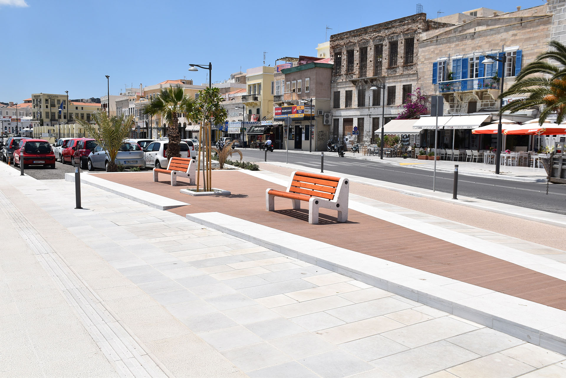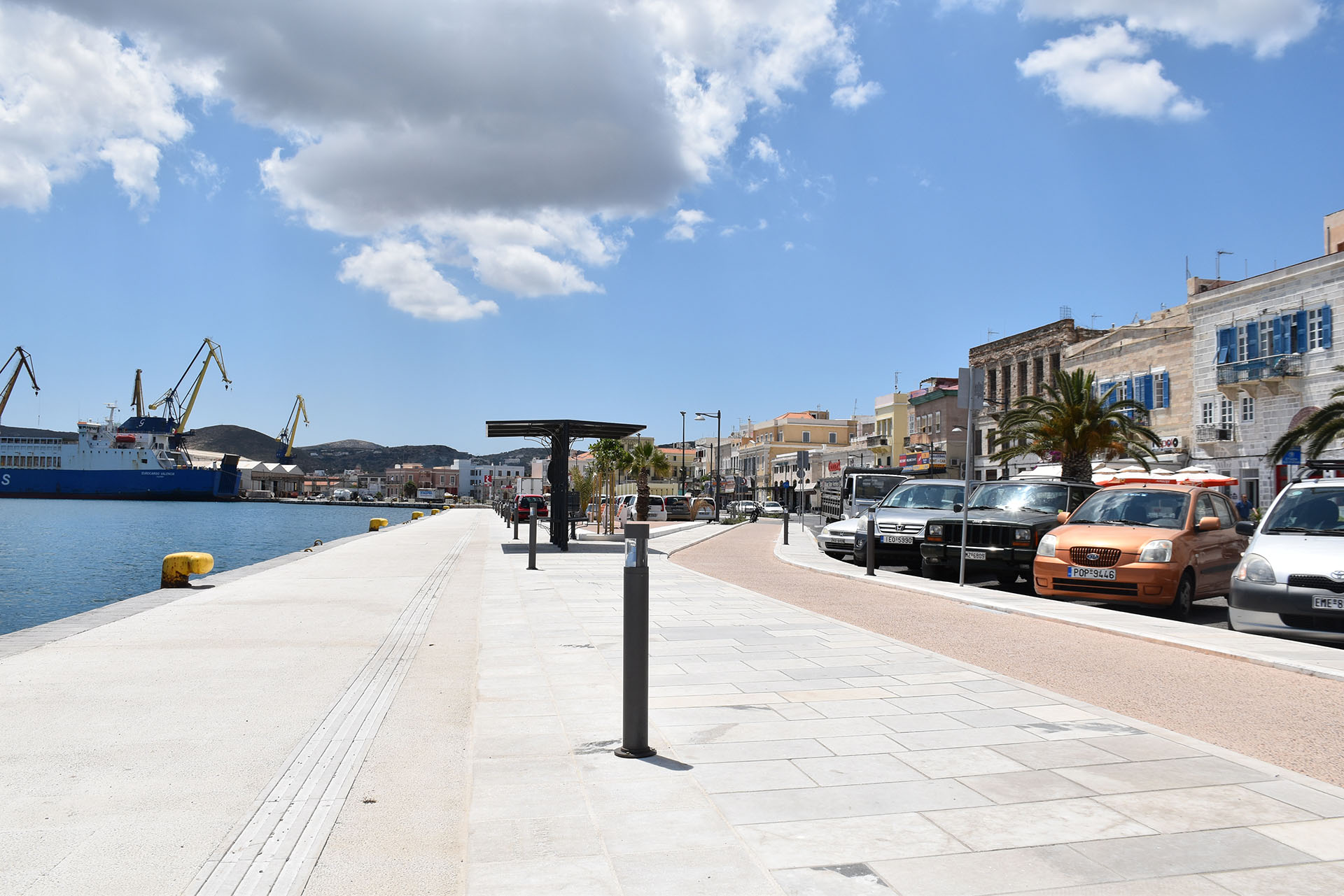 Πώς έγινε αυτό; Σε όλο το μήκος της λιμενολεκάνης, από το ανατολικό της άκρο μέχρι το δυτικό, από το κτίριο του τελωνείου, δηλαδή, μέχρι εκεί όπου αρχίζουν οι εγκαταστάσεις των ναυπηγείων, έχει κατασκευαστεί δρόμος για ποδήλατα και διάβαση για τυφλούς! Για τους τυφλούς, μάλιστα, η διάβαση περνάει σε κάποιο σημείο σε απόσταση μερικών εκατοστών από την άκρη της αποβάθρας και κανείς δεν θα πρέπει να εκπλαγεί αν κάποια στιγμή ένας από αυτούς τους άτυχους ανθρώπους βρεθεί στη θάλασσα!