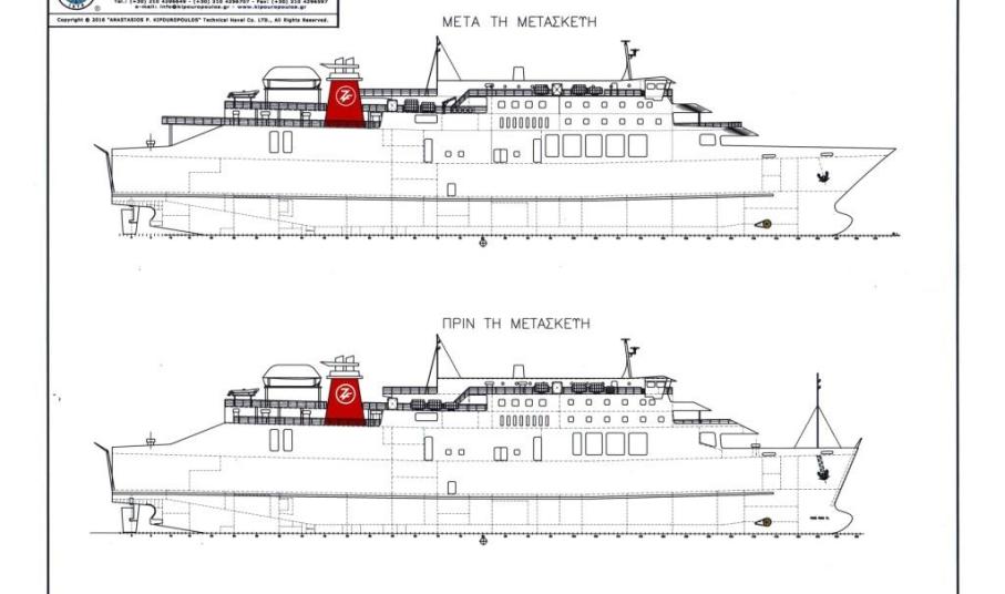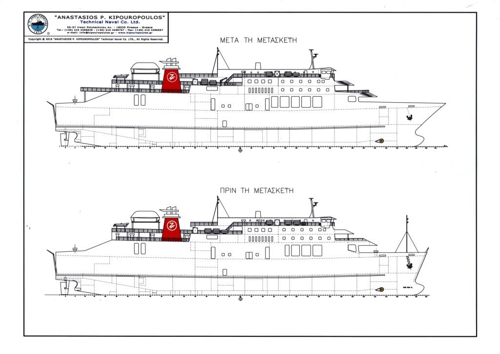Το βασικό τμήμα της μετασκευής αφορά στην αλλαγή της μορφής της πλώρης του πλοίου, την προσαρμογή του στις απαιτήσεις της Συνθήκης της Στοκχόλμης για ύψος κύματος 2,50 μέτρα και την γενική αναβάθμιση των χώρων επιβατών αλλά και πληρώματος.