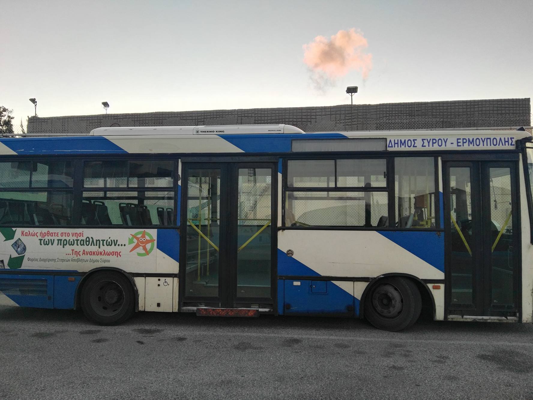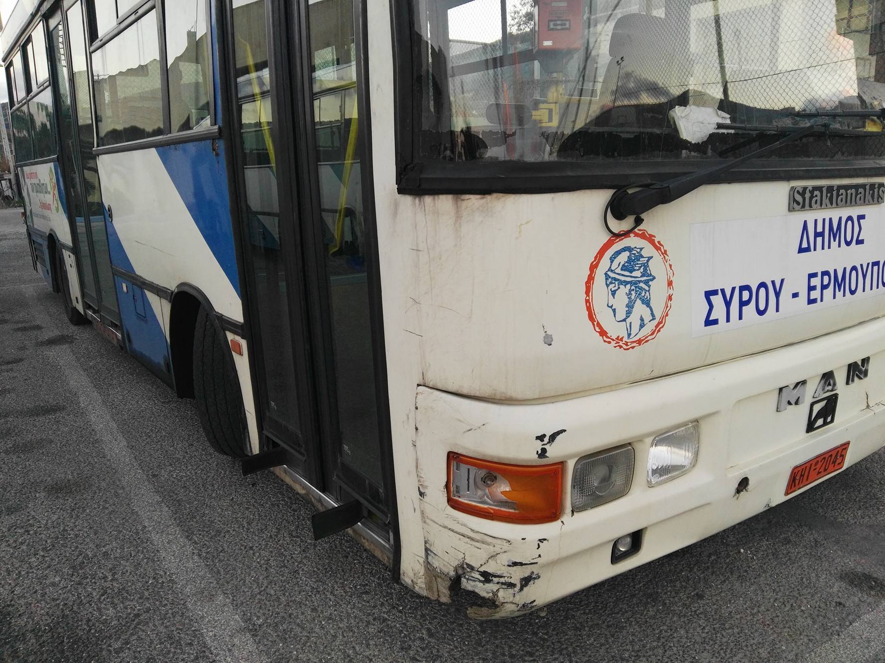 Κατάσταση που αποδεικνύει πως ορισμένα από τα mini bus του Δήμου Σύρου – Ερμούπολης δεν έχουν δεχθεί τις προβλεπόμενες εργασίες συντήρησης που αναφέρονται στις σχετικές συμφωνίες και συμβάσεις με τον ανάδοχο που εκτελεί το μεταφορικό έργο, παρατηρείται από το σχετικό φωτογραφικό υλικό της παρούσας αναφοράς, προδίδοντας ταυτόχρονα την αδιαφορία(;) της Δημοτικής Αρχής.