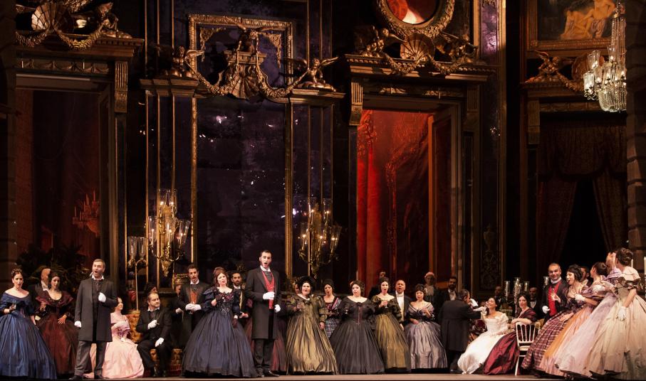 Η παράσταση της Τραβιάτας που θα προβληθεί στις 13 πόλεις, στο πλαίσιο του προγράμματος "Η Λυρική στη Μεγάλη Οθόνη", μαγνητοσκοπήθηκε τον Μάιο του 2015 στο Θέατρο Ολύμπια της Εθνικής Λυρικής Σκηνής.