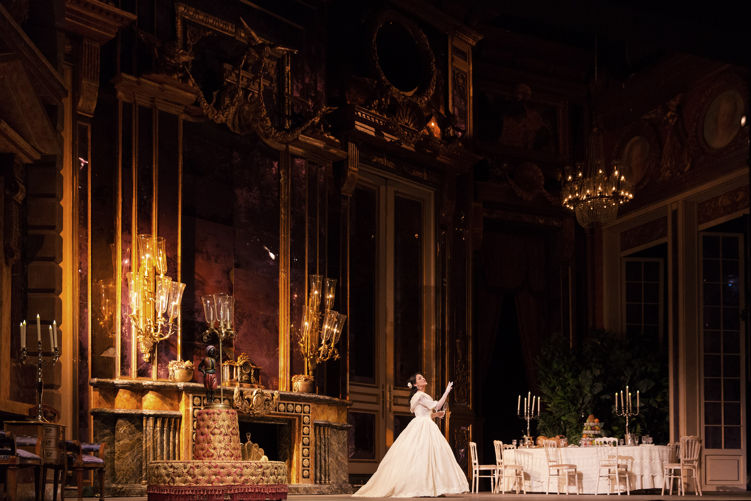 Στον πρωταγωνιστικό ρόλο της Βιολέτας, η διεθνώς καταξιωμένη Ελληνίδα σοπράνο Μυρτώ Παπαθανασίου, η οποία έχει ερμηνεύσει τον ρόλο στα πέρατα του κόσμου με ιδιαίτερη επιτυχία. Μάλιστα, για την ερμηνεία της σε αυτόν τιμήθηκε το 2012 με το βραβείο «Μαρία Κάλλας» για τον καλύτερο πρωτοεμφανιζόμενο καλλιτέχνη στην Όπερα του Ντάλλας. Η Παπαθανασίου σημείωσε μια σπουδαία ερμηνεία φωνητικά, αλλά και υποκριτικά.