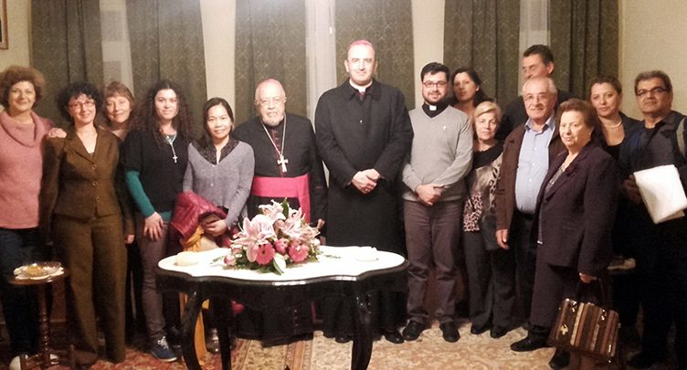 Τέλος, είχαν τη δυνατότητα να ανταλλάξουν χαιρετισμό με τον σεβασμιότατο Πέτρο και τον σεβασμιότατο Φραγκίσκο, αφού προσεκλήθησαν από τα μέλη του ενοριακού συμβουλίου στο κέρασμα που ακολούθησε στην Επισκοπή. Για την ενοριακή μας κοινότητα ήταν η πρώτη φορά που πραγματοποιήθηκε προσκυνηματικό ταξίδι σε κάποιο άλλο νησί και αποτέλεσε μια πολύ ευχάριστη εμπειρία.