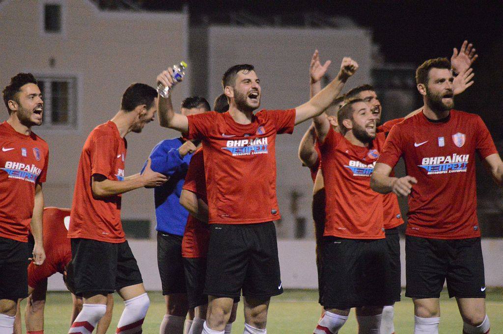 Η Θύελλα επικράτησε με 2-0 της Άνω Μεράς στο γήπεδο του Καμαρίου και πλέον είναι η μόνη ομάδα η οποία βρίσκεται κοντά στον πρωτοπόρο Α.Ο. Σύρου. Οι γηπεδούχοι αποδείδοντας ωραίο ποδόσφαιρο, πρόσφεραν θέαμα στους φίλους της ομάδας τους και θα μπορούσαν να είχαν σημειώσει περισσότερα τέρματα. Από την άλλη πλευρά η Άνω Μερά δεν παρουσιάστηκε όπως θα έρπεπε στο Καμάρι, αφού άφησε ένα μεγάλο κομμάτι της… δύναμής στη Μύκονος, βρέθηκε πίσω στο σκορ και δεν μπόρεσε έκτοτε να αντιδράσεις. Βέβαια δημιούργησε 1-2 καλές ευκαιρίες για γκολ και ίσως να μπορούσε να βάλει κάποιο τέρμα. Γενικά το παιχνίδι ήταν πολύ καλό, αφού καμιά ομάδα δεν έπαιξε με σκοπιμότητες, κοιτούσαν τις άμυνές τους, όμως δημιουργήσαν αρκετές καλές στιγμές μπροστά στις δύο εστίες. Από εκεί και πέρα η Θύελλα με τη νίκη της αυτή έφτασε τους 16 βαθμούς και βρίσκεται πέντε πόντους πίσω από την ομάδα της Σύρου η οποία έχει 21. Βέβαια η ομάδα της Σαντορίνης έχει ένα περισσότερο παιχνίδι και την ερχόμενη αγωνιστικής θα έχει ρεπό. Αυτό σημαίνει πως αν το συγκρότημα των Ρούσσου – Βαρθαλίτη περάσει από την Μύκονο τότε η διαφορά θα φτάσει τους οκτώ πόντους.