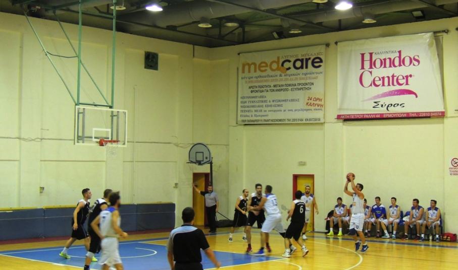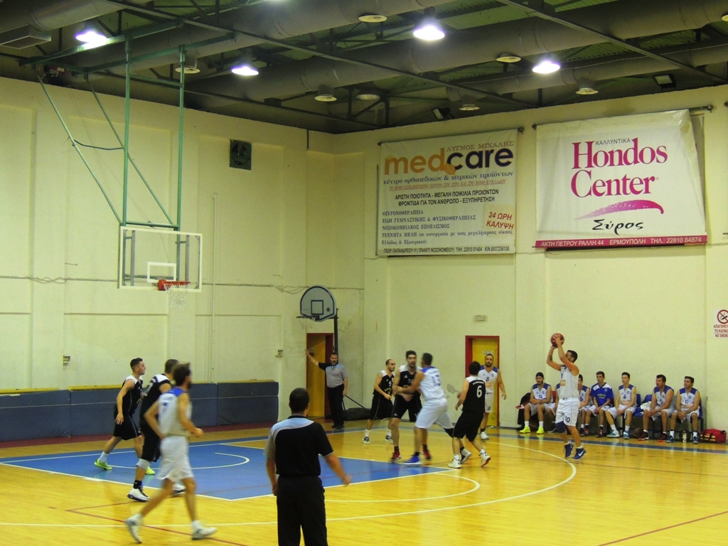Το ροζ φύλλο αγώνα πήρε η ομάδα του Α.Ο. Ερμούπολης για το πρωτάθλημα των ανδρών, καθώς επικράτησε του Α.Ο. Πάρου με 59-46. Το τελικό αποτέλεσμα και το +13 δεν αντικατοπτρίζει την πραγματική εικόνα του αγώνα, αφού η νίκη για τους γηπεδούχους ήλθε πιο δύσκολα. Οι φιλοξενούμενοι ήταν ανταγωνιστική κατά τη μεγαλύτερη διάρκεια του αγώνα και ο Α.Ο. Ερμούπολης έφτασε στη νίκη λόγω της εμπειρίας των παικτών του, αλλά και της ευστοχίας τους έξω από τη γραμμή των 6,75.