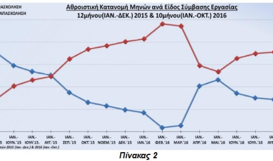 Η δυσμενής αυτή εικόνα οφείλεται αποκλειστικά στην ανερμάτιστη και ιδεοληπτική πολιτική της κυβέρνησης ΣΥΡΙΖΑ-ΑΝΕΛ. Η εικόνα είναι αποκαρδιωτική. Τίποτα δεν προϊδεάζει ότι θα υπάρξει βελτίωση και επαναφορά στην προτέρα κατάσταση όπου κυριαρχούσε η πλήρης απασχόληση. Αντίθετα, διαμορφώνεται μια τάση περαιτέρω διεύρυνσης υπέρ των ευέλικτων μορφών απασχόλησης (Πίνακας 2)