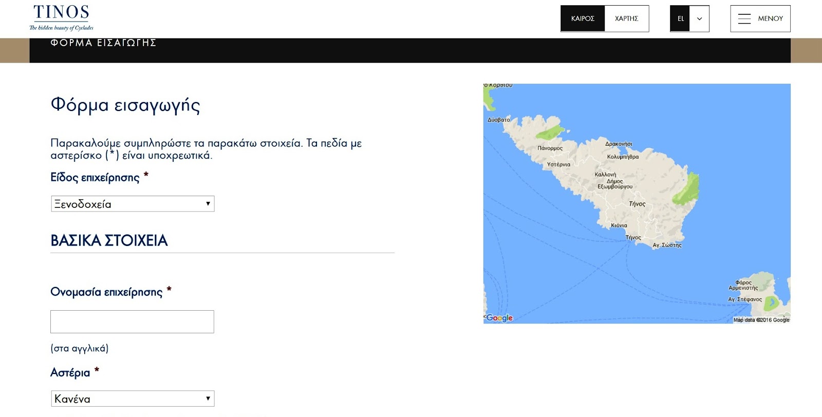 Ο Δήμος Τήνου καλεί τους επαγγελματίες του νησιού που επιθυμούν την προβολή τους μέσα από το τουριστικό portal του Δήμου www.tinos.gr, να συμπληρώσουν τη φόρμα που βρίσκεται στη διεύθυνση http://www.tinos.gr/business-form/.
