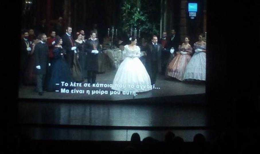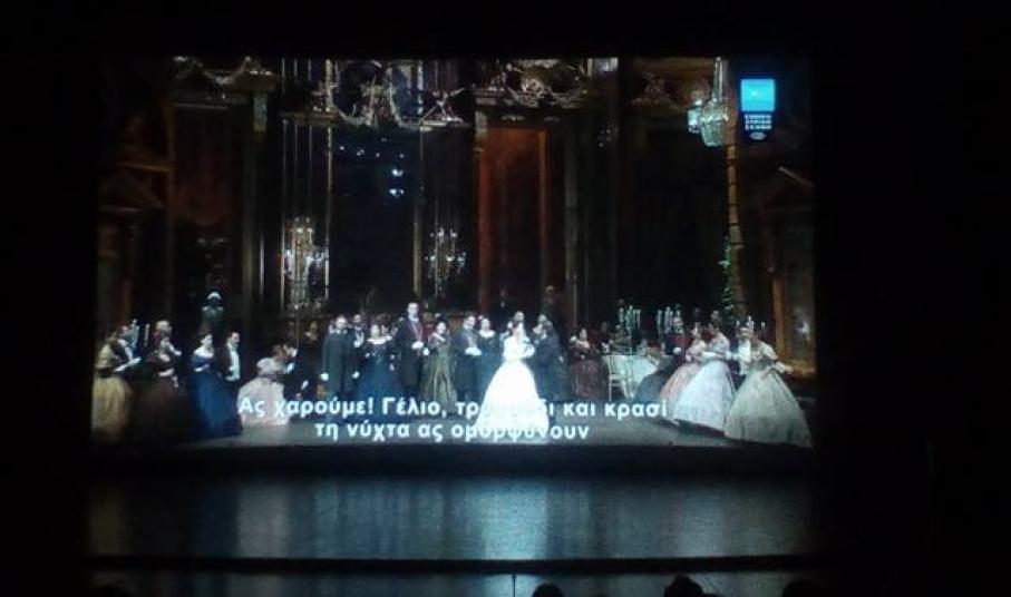 Η παράσταση «Τραβιάτα» του Τζουζέππε Βέρντι, που μαγνητοσκοπήθηκε τον Μάιο του 2015 στο Θέατρο Ολύμπια της Εθνικής Λυρικής Σκηνής, προβλήθηκε με επιτυχία στο Θέατρο Απόλλων της Ερμούπολης, καθώς και σε κινηματογραφικές αίθουσες και πολιτιστικούς χώρους 12 ακόμα πόλεων της χώρας.