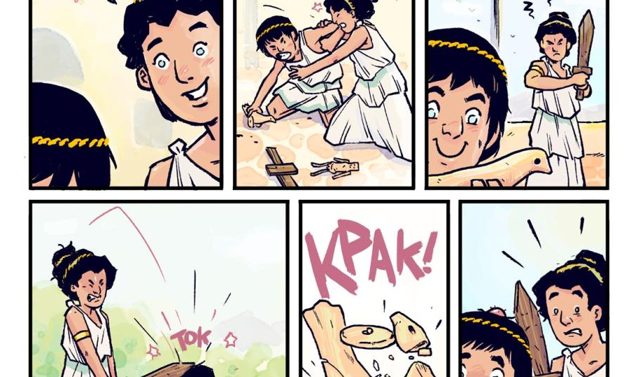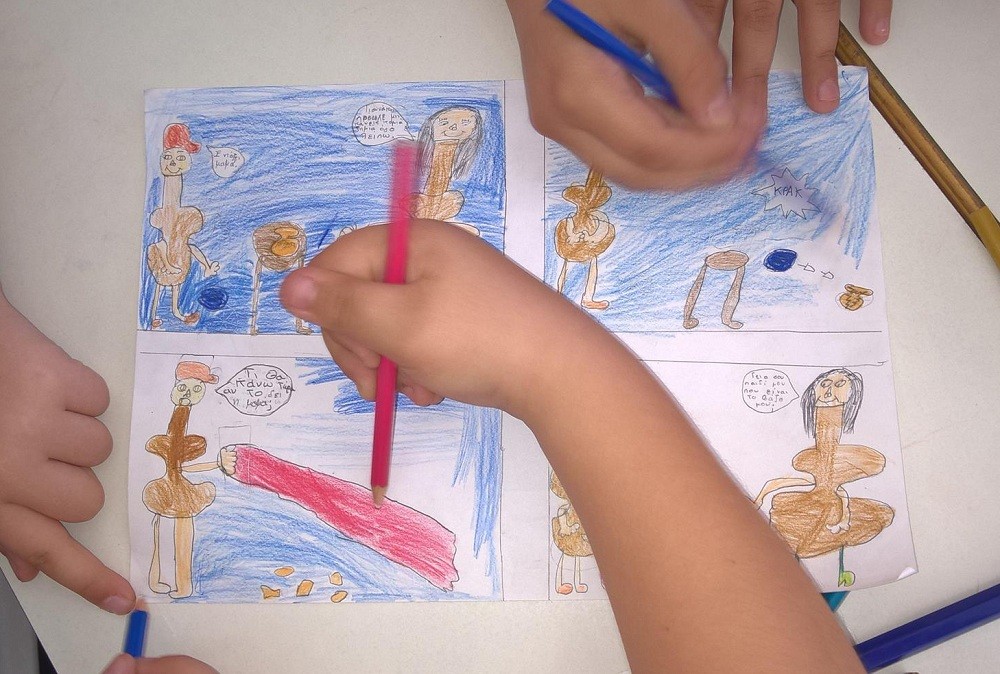 Με αφορμή τα σεμινάρια για εκπαιδευτικούς, το 6ο Δημοτικό Σχολείο Ερμούπολης έδωσαε τη δυνατότητα στους μαθητές να ετοιμάσουν κόμικ με θέματα εμπνευσμένα από την αρχαιότητα.