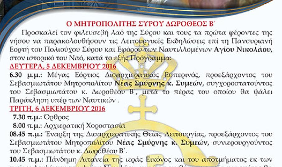 Πρόγραμμα εορτασμού Αγ. Νικολάου