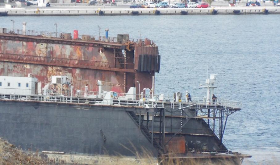 Το μεσημέρι της Κυριακής πραγματοποιήθηκε η άφιξη της πλωτής δεξαμενής Νο3 του Πολεμικού Ναυτικού στο Νεώριο, με τέσσερα ρυμουλκά να συνδράμουν για την είσοδό της στο λιμάνι και στις εγκαταστάσεις του ναυπηγείου.