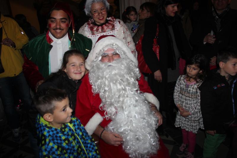 Μετά τη φωταγώγηση του χριστουγεννιάτικου δέντρου, ξετρύπωσαν από το Δημαρχιακό Μέγαρο δύο σκανταλιάρικα ξωτικά τα οποία προετοίμασαν το έδαφος για την άφιξη του "υπναρά" Αη-Βασίλη. Μαζί με τη σύζυγό του, ο αγαπημένος μικρών και μεγάλων υποδέχτηκε τους φίλους του στο ισόγειο του Δημαρχείου, όπου τα μέλη της Φιλαρμονικής του Δήμου Σύρου - Ερμούπολης και στη συνέχεια οι μαθητές του μουσικού εργαστηρίου "το τρεχαντηράκι της ελπίδας" σκόρπισαν χριστουγεννιάτικες μελωδίες.
