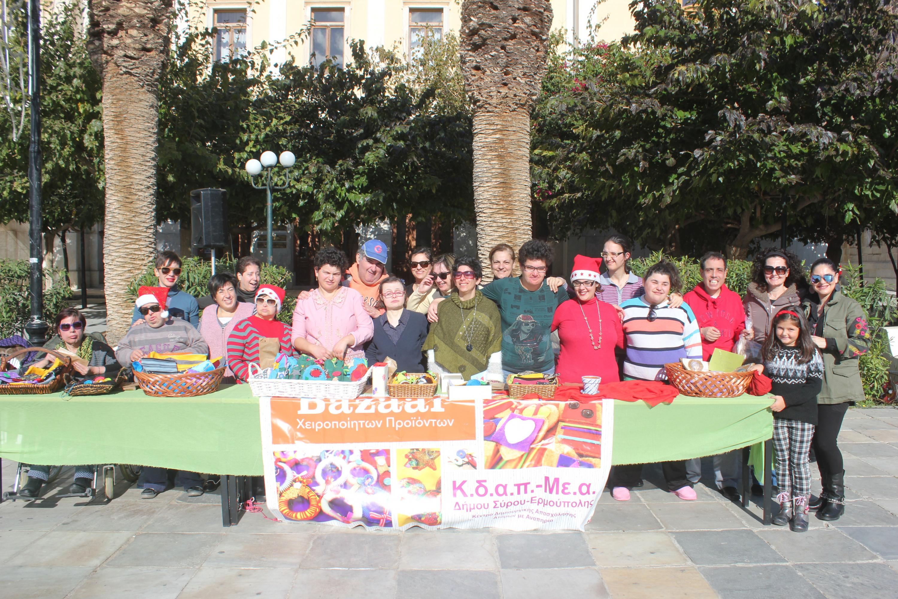 Με χαρά, υπερηφάνεια και γιορτινή διάθεση, οι εκπαιδευόμενοι παρουσίασαν τις νέες δημιουργίες τους και διένειμαν στους περαστικούς ενημερωτικά φυλλάδια για το έργο και τους στόχους του ΚΔΑΠ – ΜΕΑ το οποίο λειτουργεί στην Ερμούπολη από το 2002.