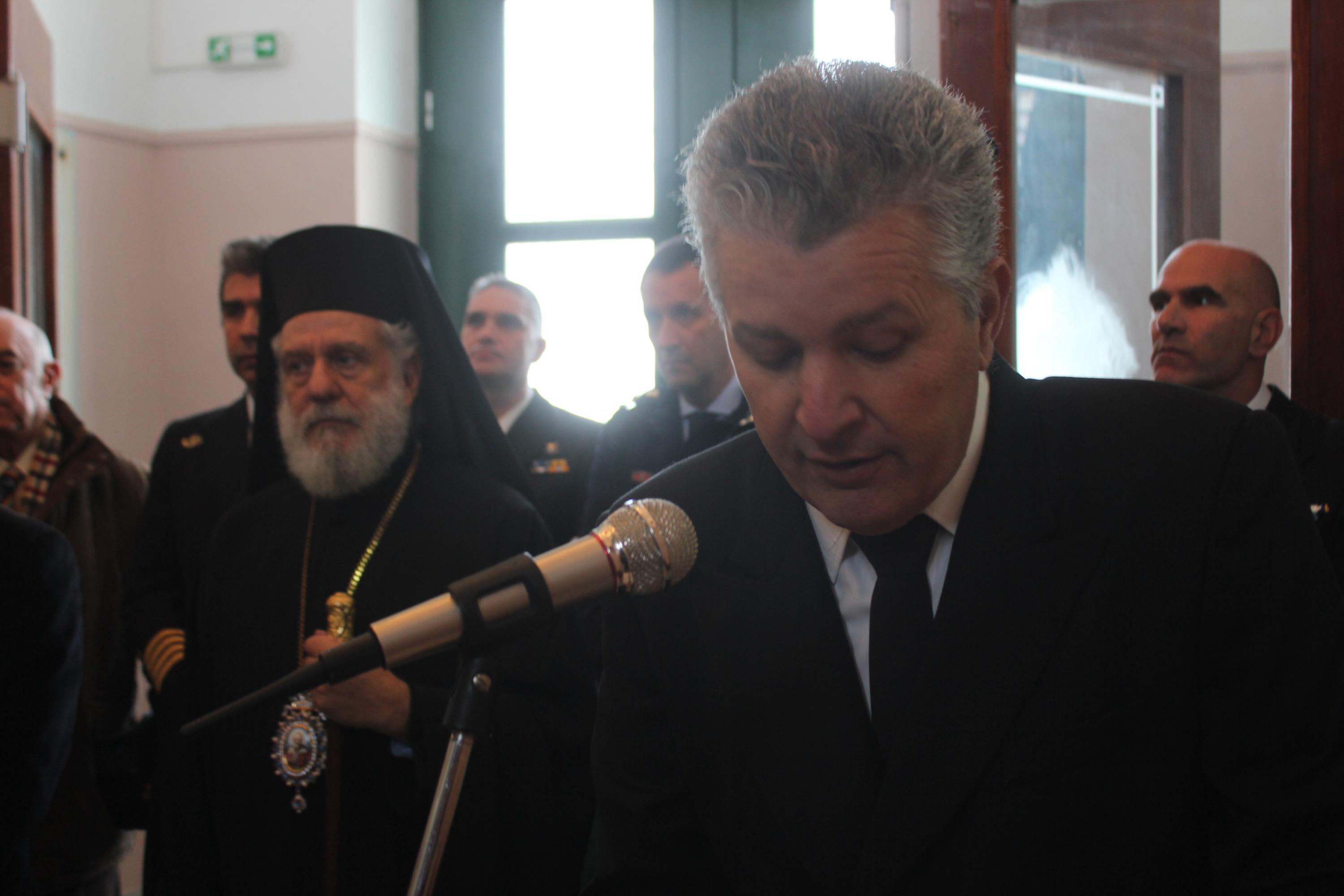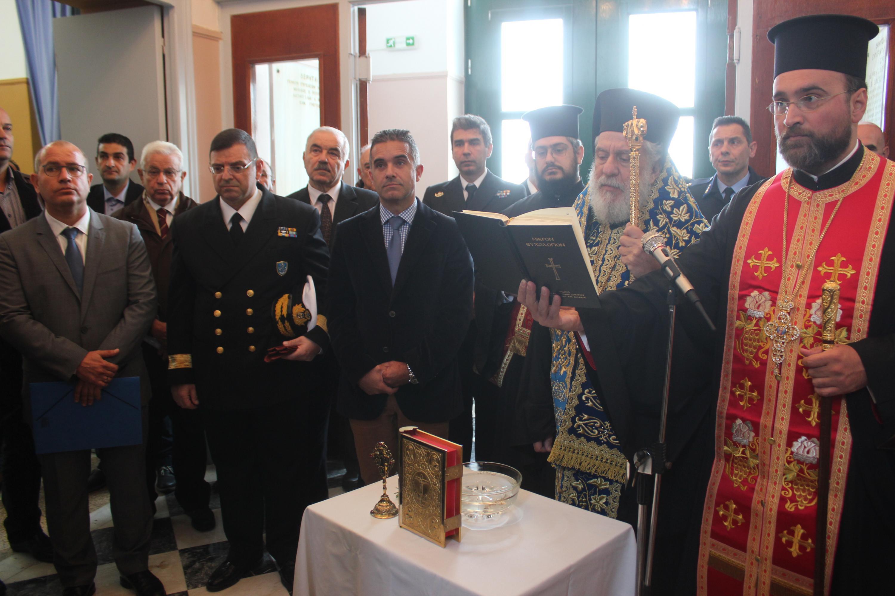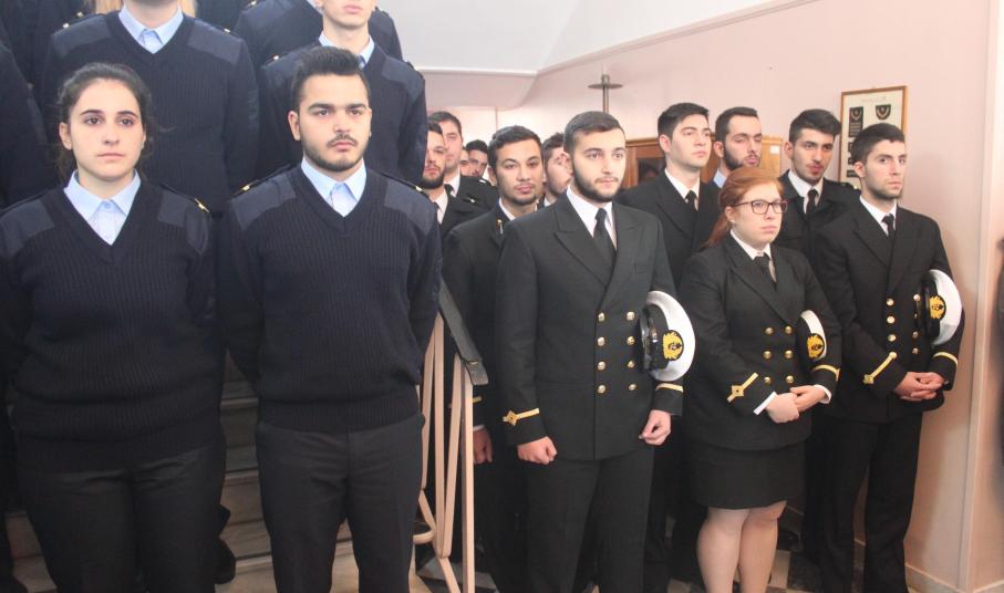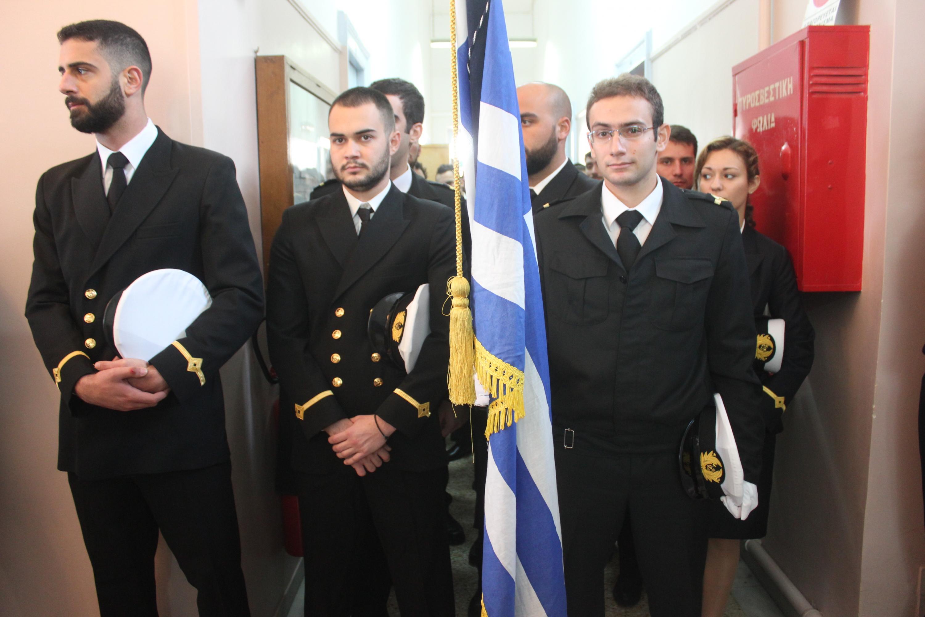 Τον αγιασμό για τη νέα διδακτική χρονιά τέλεσε ο Σεβασμιώτατος Μητροπολίτης Σύρου κ. Δωρόθεος Β’, ευχόμενος στους σπουδαστές να συνεχίσουν την ένδοξη ναυτική παράδοση της Ελλάδας, μιας χώρας που καυχιέται για τον ουρανό της, τις γαλάζιες θάλασσες της και τα υπερήφανα παιδιά της, τα όνειρα των οποίων δεν θα πρέπει να επιτρέψουμε σε κανέναν να τα ψαλιδίσει. Ο κ. Δωρόθεος δεν παρέλειψε να αναφερθεί στην αγαστή συνεργασία του με τον προηγούμενο διοικητή της Σχολής Νικόλαο Πολέμη, ευχόμενος καλή επιτυχία στα νέα του καθήκοντα στο κεντρικό Λιμεναρχείο του Πειραιά.