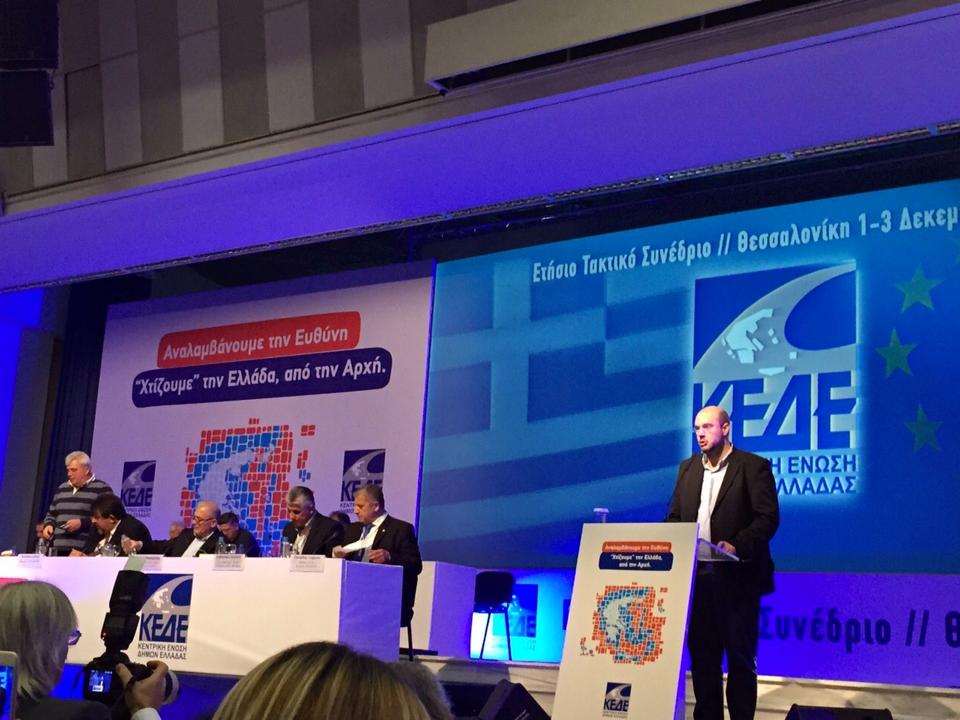 Με τον πλέον επίσημο τρόπο συμμετείχε η Ένωση Νέων Αυτοδιοικητικών Ελλάδος (ΕΝΑ) στο ετήσιο τακτικό συνέδριο της ΚΕΔΕ που πραγματοποιήθηκε στη Θεσσαλονίκη και στο Βελλίδειο Συνεδριακό Κέντρο από 1-3 Δεκεμβρίου. Κατά τη διάρκεια της τρίτης και τελευταίας ημέρας του συνεδρίου, ο Πρόεδρος της ΕΝΑ και δημοτικός σύμβουλος Παλλήνης Νεκτάριος Καλαντζής μίλησε από το βήμα του Συνεδρίου εκ μέρους της ΕΝΑ για τη δράση των Νέων στην Τοπική Αυτοδιοίκηση, την ανάγκη να συμμετάσχουν περισσότεροι νέοι άνθρωποι στην Τοπική Αυτοδιοίκηση Α’ και Β΄ βαθμού, όπως και ότι στην ΕΝΑ ήδη συμμετέχουν νέοι αυτοδιοικητικοί από κάθε περιφέρεια της χώρας, από το ακριτικό Καστελόριζο και τη Θράκη, ως την Κέρκυρα και τη Μάνη.