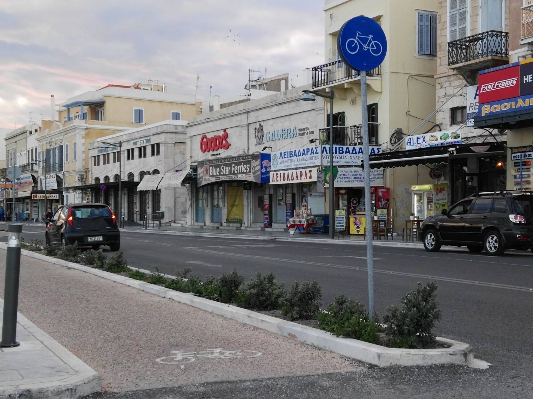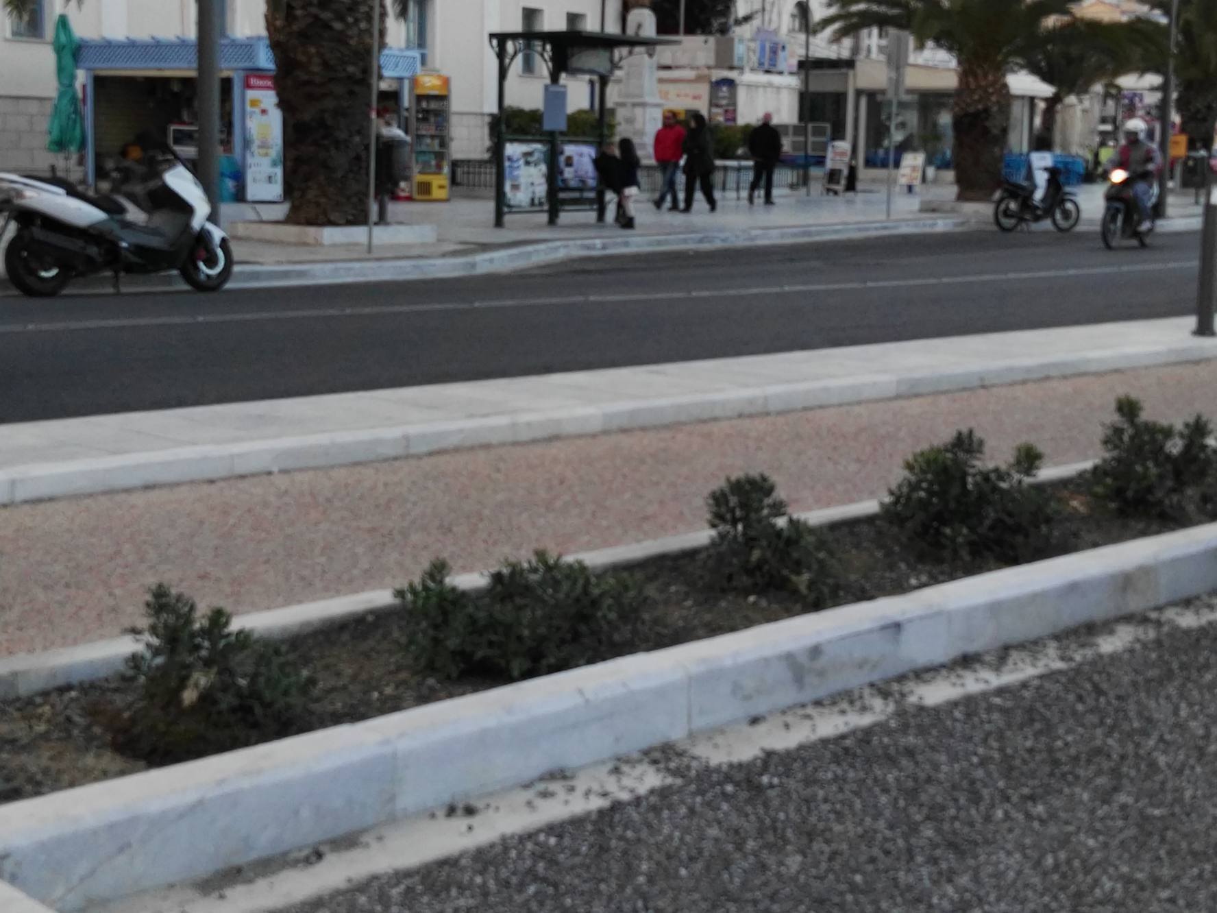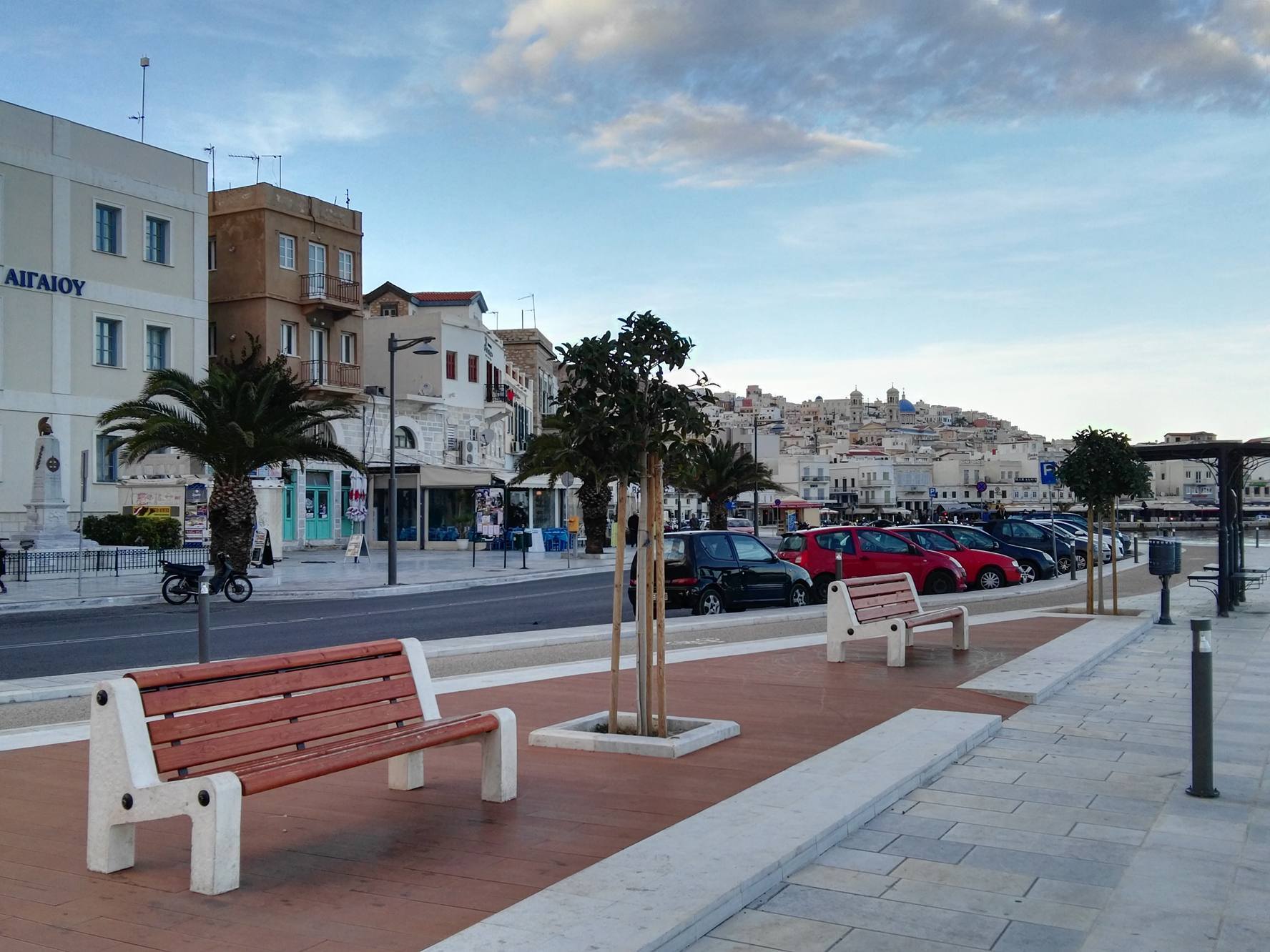 Μικρή “όαση” πρασίνου αποτελούν τα δενδρύλλια και τα μικρά παρτέρια με τα φυτά εξωτερικού χώρου κατά μήκος του παραλιακού μετώπου της Ερμούπολης, τα οποία προσελκύουν το βλέμμα των περιπατητών, αφού συνδράμουν στη διαμόρφωση ενός φιλικού περιβάλλοντος για τους δημότες.