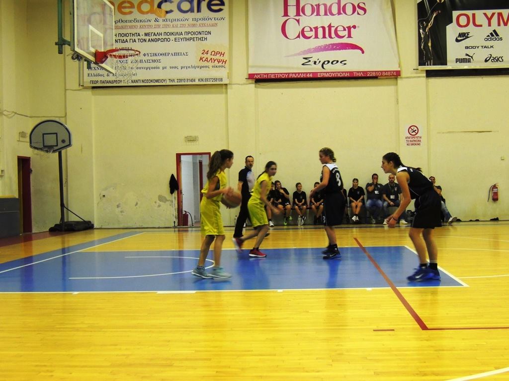 Ισάριθμες νίκες σημείωσε ο Α.Ο. Ερμούπολης απέναντι στον Άρη Σύρου επικρατώντας με 8-102 στις Κορασίδες και 66-79 στην κατηγορία των Εφήβων. Στο πρώτο ματς που διεξήχθη στο κλειστό Α.Κ.Δ.Ε., οι περσινές πρωταθλήτριες δεν αντιμετώπισαν κανένα πρόβλημα από την αρχή του αγώνα και κατάφεραν να κερδίσουν εύκολα την τυπικά γηπεδούχο ομάδα. Με αυτή την νίκη παρέμειναν πρώτες στον όμιλο και έδειξαν για άλλη μια φορά πως είναι από τα φαβορί για την κατάκτηση του τίτλου. Από την άλλη πλευρά τα κορίτσια του Άρη Σύρου έπαιξαν απέναντι σε έναν δυνατό αντίπαλο κι αν και έχασαν το ματς… κέρδισαν πολλές εμπειρίες για το μέλλον.