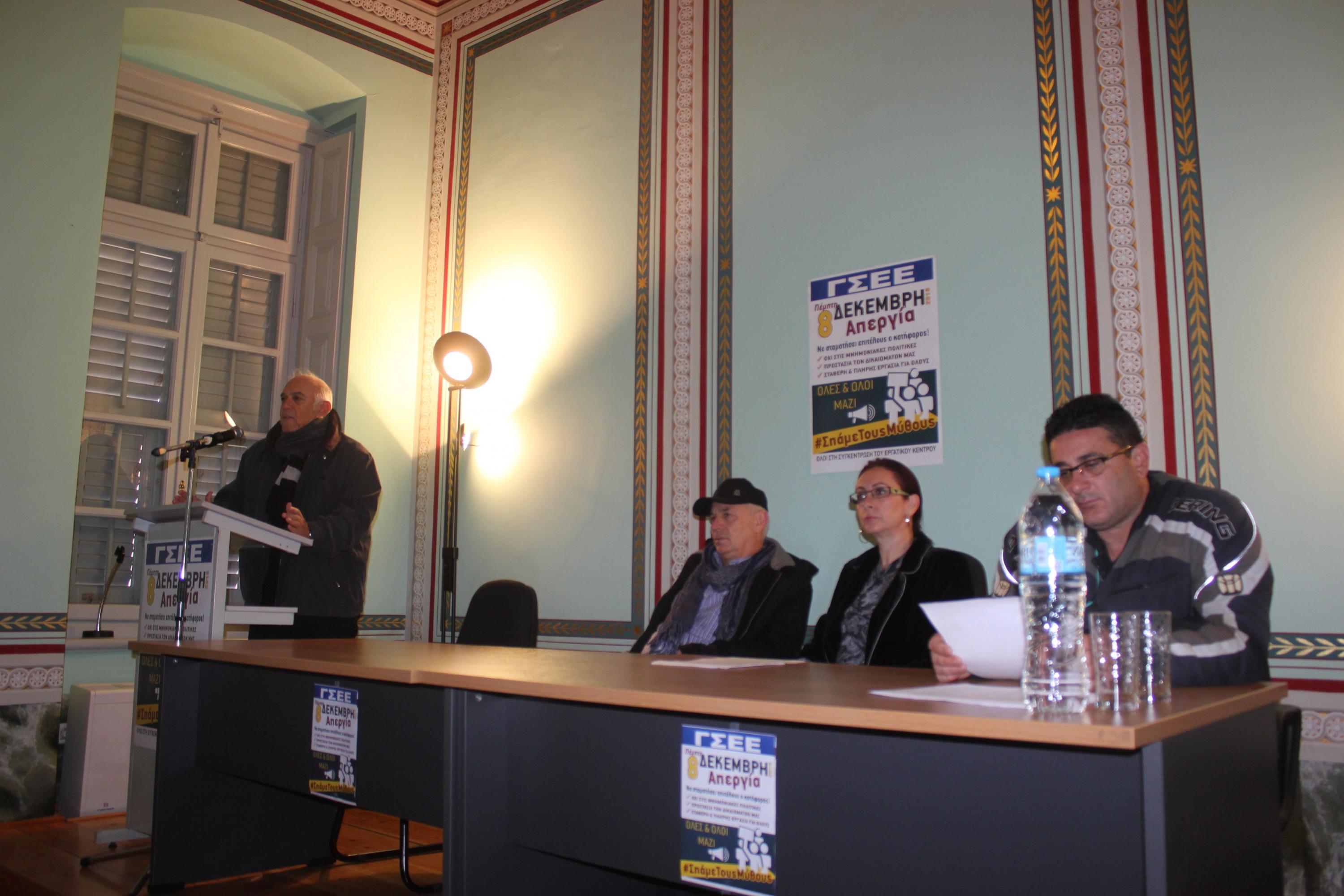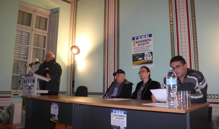 Ωστόσο, ιδιαιτέρως απαξιωμένη υπήρξε η συγκέντρωση – συνάντηση που πραγματοποιήθηκε στο Εργατικό Κέντρο Κυκλάδων, με τους εκπροσώπους των Συλλόγων και των Φορέων που παραβρέθηκαν, να προβαίνουν επί της ουσίας σε χαιρετισμούς που άκουσαν για ακόμη μία φορά μόνον οι ίδιοι, αφού εκκωφαντική... υπήρξε η απουσία του κόσμου. Μάλιστα, η συγκεκριμένη συνάντηση χαρακτηρίστηκε ως “απεργία δωματίου” από την πλευρά του προέδρου του Δικηγορικού Συλλόγου Σύρου, ο οποίος προχώρησε σε μία πιο ουσιαστική τοποθέτηση στον χαιρετισμό του. Πέραν του προέδρου του Εργατικού Κέντρου, μεταξύ άλλων, έδωσαν το “παρών” εκπρόσωποι των ναυτικών, των ομολογιούχων, των συνταξιούχων ΙΚΑ, καθώς επίσης των τεχνικών της ΔΕΗ και των εκτάκτων του ναυπηγείου, ενώ συμμετείχε και ο πρώην Νομάρχης Κυκλάδων.