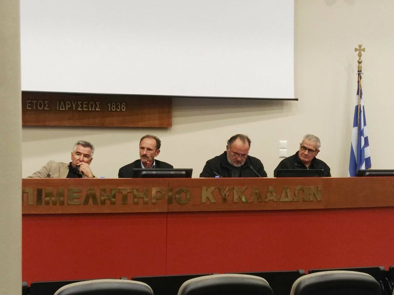 Αν και όπως πολλάκις διευκρίνισε ο πρόεδρος του Επιμελητηρίου Κυκλάδων, Γιάννης Ρούσσος, η εν λόγω συνάντηση με πρωτοβουλία του ίδιου του Επιμελητηρίου είχε αποκλειστικά χαρακτήρα τεχνικής ενημέρωσης για την άμεση συνδρομή των επιχειρηματιών - και γι αυτό παρέστη και ο προϊστάμενος των Τεχνικών Υπηρεσιών του Δήμου, Παναγιώτης Καρακατσάνης -, ωστόσο, αλγεινή εντύπωση προκάλεσε η παρουσία δύο εκ των παρισταμένων δημοτικών συμβούλων, οι οποίοι με παρεμβάσεις αντιπολιτευτικού ύφους προς τη Δημοτική Αρχή, επεδίωξαν να καρπωθούν σε πολιτικό όφελος, τον πανικό που έχει κατακλύσει τους επιχειρηματίες. Αρκεί να υπογραμμισθεί δε, πως, κατά την ομιλία συμβούλου, αποχώρησε ο πρόεδρος του Συλλόγου Επιχειρηματιών Εστίασης, “Τερψιχόρη”.