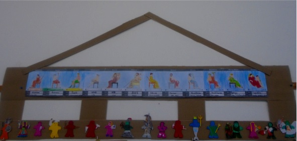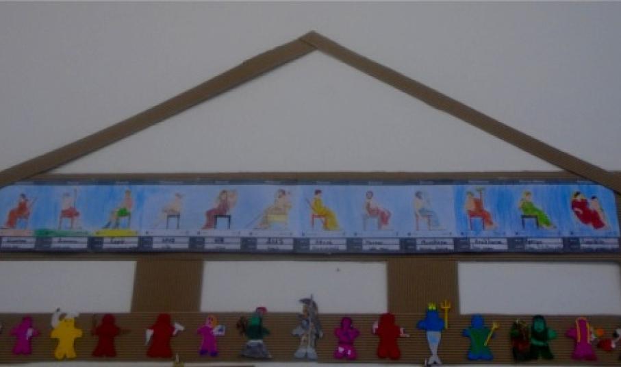 Στο πλαίσιο αυτό, οι μαθητές του Γ2 φαντάστηκαν και δημιούργησαν τους 12 Θεούς του Ολύμπου, τους οποίους τοποθέτησαν επάνω στη δική τους Ζωφόρο, που κατασκεύασαν με τη βοήθεια της μουσειοσκευής «Το δωδεκάθεο» του Μουσείο της Ακρόπολης.