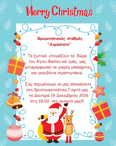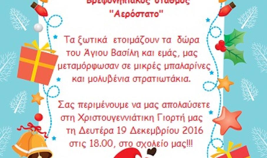 Μία ξεχωριστή χριστουγεννιάτικη γιορτή προετοιμάζει το "Αερόστατο" για τους μικρούς φίλους του, στις εγκαταστάσεις της ιδιωτικής δομής, τη Δευτέρα, 19 Δεκεμβρίου, στις 6 το απόγευμα.