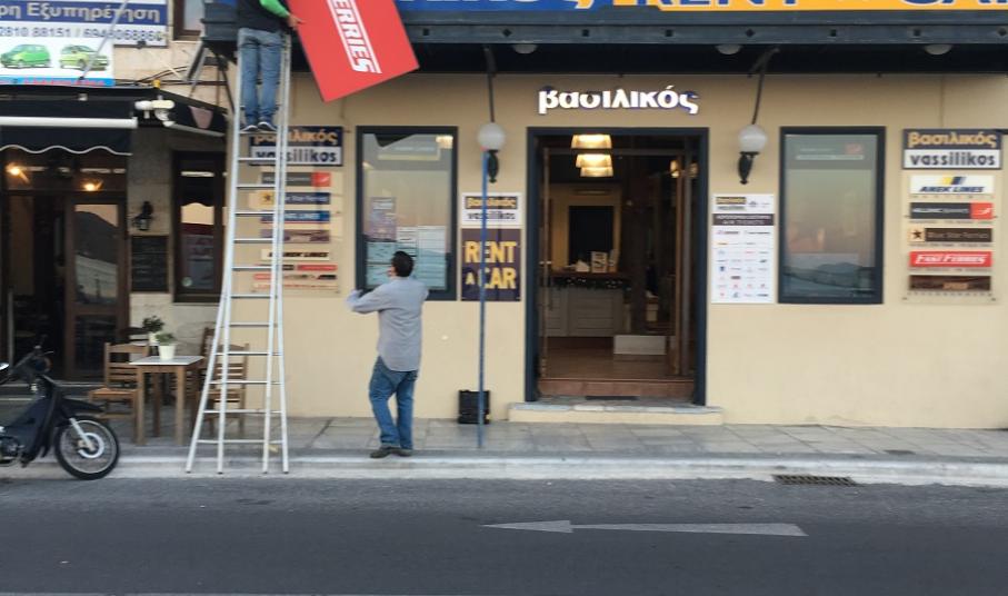 Κίνηση άξια λόγου και δημοσιότητας αποτελεί η απόφαση του ταξιδιωτικού πράκτορα και γραμματέα του διοικητικού συμβουλίου του Επιμελητηρίου Κυκλάδων, Νίκου Βασιλικού να προβεί στην απομάκρυνση των τεράστιων διαφημιστικών πινακίδων που υπήρχαν μέχρι πρότινος στην πρόσοψη του πρακτορείου του, στο παραλιακό τμήμα της Ερμούπολης.