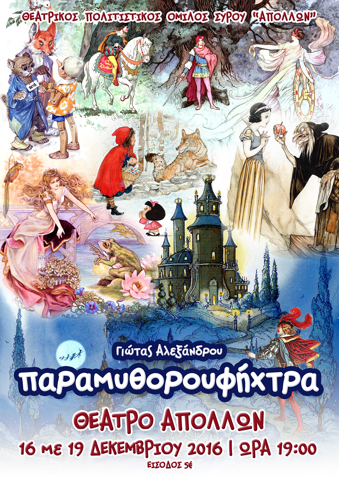 Ο Θεατρικός Πολιτιστικός Όμιλος Σύρου «ΑΠΟΛΛΩΝ» παρουσιάζει το παιδικό θεατρικό έργο της Γιώτας Αλεξάνδρου «Παραμυθορουφήχτρα», από την Παρασκευή 16 Δεκεμβρίου έως και τη Δευτέρα 19 Δεκεμβρίου 2016, στο Θέατρο ΑΠΟΛΛΩΝ και ώρα 19:00.