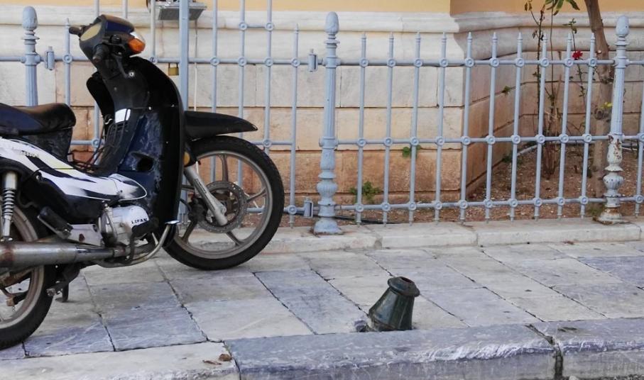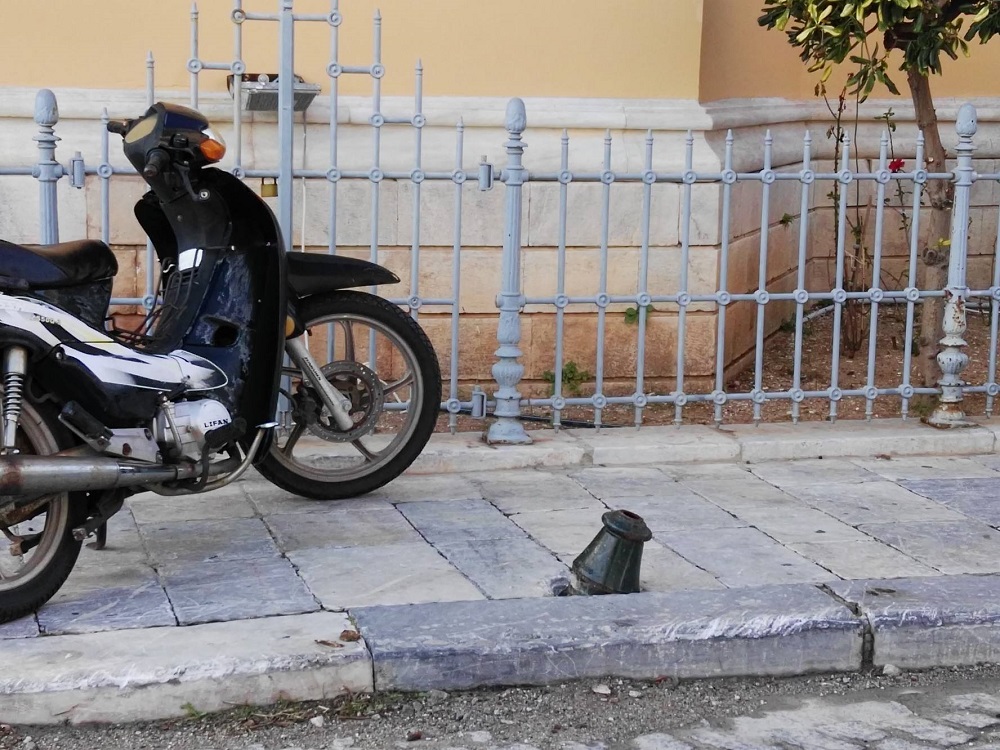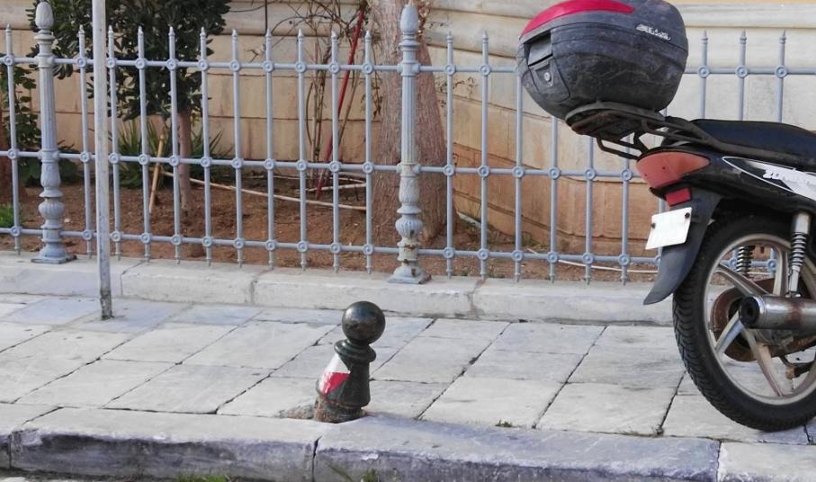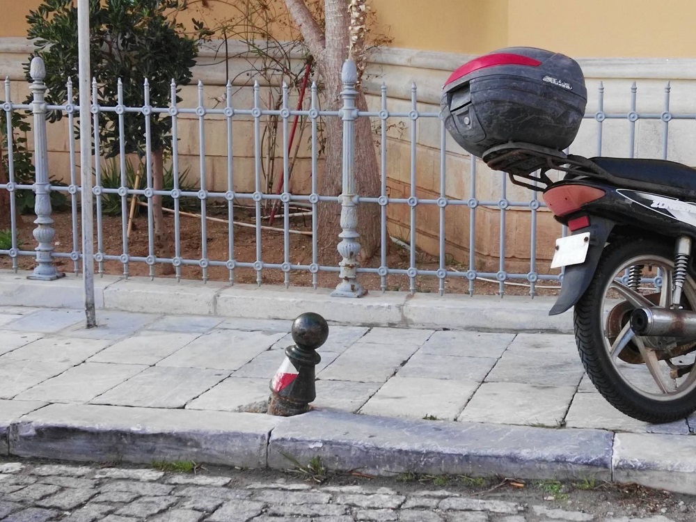 Συγκεκριμένα, σε καθημερινή βάση οδηγοί μηχανών, αν και διαπιστώνουν πως επί του πεζοδρομίου έχουν τοποθετηθεί ειδικά χαμηλά κολονάκια για να αποτρέψουν την παράνομη στάθμευση, ωστόσο, οι ίδιοι εξακολουθούν να χρησιμοποιούν ως parking τα διαθέσιμα κενά τμήματα των πεζοδρομίων, γεννώντας μία εικόνα ασύδοτη, η οποία εμμέσως “προτρέπει” κι άλλους οδηγούς να ακολουθήσουν την ίδια τακτική.
