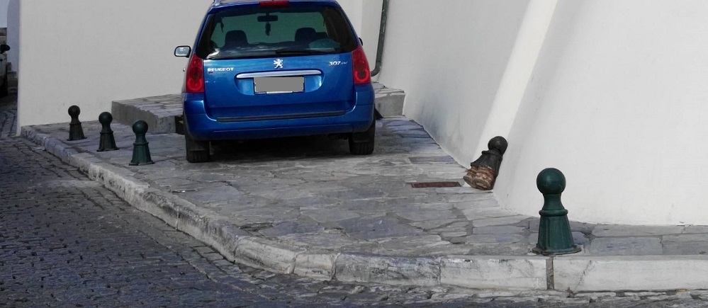 Παρόμοια εικόνα παρατηρείται συχνά στο ακριβώς απέναντι πεζοδρόμιο, σε τμήμα του οποίου αν κι έχει δοθεί άδεια για στάθμευση οχήματος, ωστόσο, αυτός ο χώρος αξιοποιείται από τον κάθε έναν πολίτη.