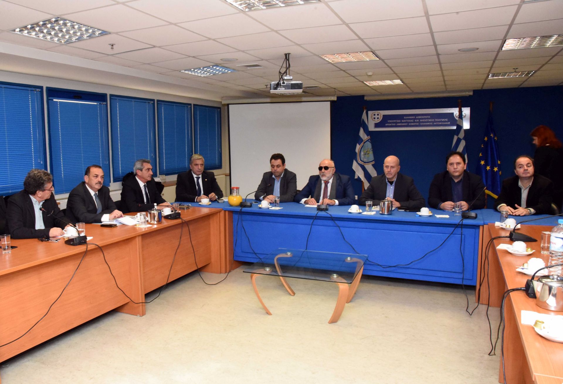 Διευρυμένη σύσκεψη πραγματοποιήθηκε εχθές στο υπουργείο Ναυτιλίας, υπουργό Ναυτιλίας και Νησιωτικής Πολιτικής, Παναγιώτη Κουρουμπλή και τον υφυπουργό, Νεκτάριο Σαντορινιό, με τη συμμετοχή του Γενικού Γραμματέα, Λιμενικής Πολιτικής Χ. Λαμπρίδη και του Γενικού Γραμματέα Νησιωτικής Πολιτικής, Γ. Θεοδοσιάδη, όπως και των περιφερειαρχών Βορείου και Νοτίου Αιγαίου, Χριστίνας Καλογήρου και Γιώργου Χατζημάρκου, αντίστοιχα, του προέδρου της ΚΕΔΕ, Γιώργου Πατούλη, των περιφερειαρχών Ιονίων Νήσων, Θόδωρου Γαλιατσάτου και Κρήτης, Σταύρου Αρναουτάκη.