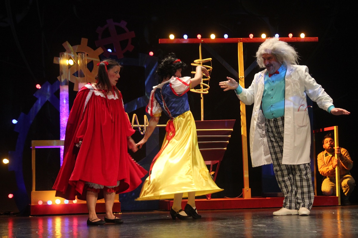 Αυτή τη φορά, το κοινό παρακολούθησε το «οδοιπορικό» της Χιονάτης (Χριστίνα Παναγιωτοπούλου» και της Κοκκινοσκουφίτσας (Ζωή Γεωργίου) που ξεκίνησαν αλά μπρατσέτα για τον πύργο του φοβερού και τρομερού Δόκτορα Μπαμπέση Πανουργίδη (Μιχάλης Ζουλουφός) προκειμένου να καταστρέψουν την περιβόητη μηχανή που κάνει όλα τα παραμύθια κιμά.