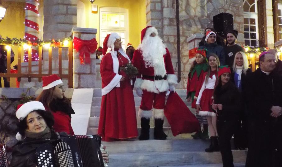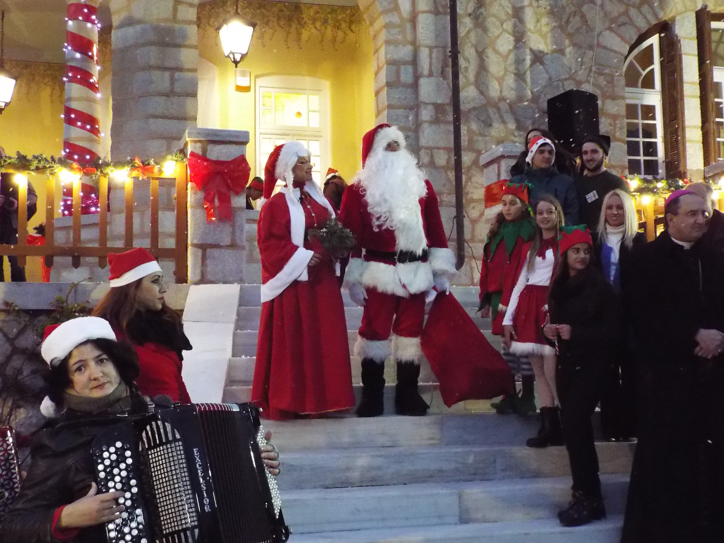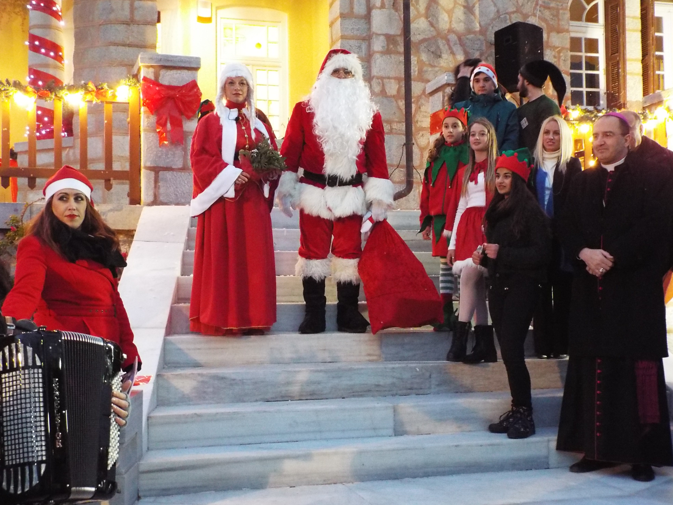 Στο σύντομο χαιρετισμό του, ο Καθολικός Επίσκοπος Σύρου Σεβ. π. Πέτρος Στεφάνου αναφέρθηκε στη σημασία της εορτής των Χριστουγέννων η οποία πλημμυρίζει τις καρδιές των ανθρώπων με χαρά και αγαλλίαση. «Αυτές τις ημέρες, εορτάζουμε ένα μοναδικό γεγονός. Ο Θεός γίνεται άνθρωπος για να μας στηρίζει στη ζωή και να μας δίνει δύναμη» τόνισε, ευχόμενος σε όλους «καλή χρονιά».