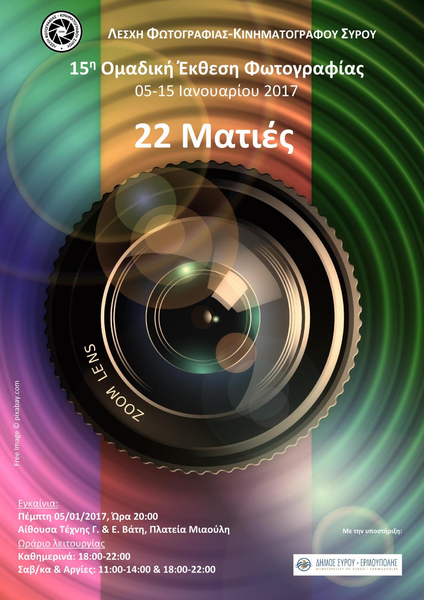 Η Λέσχη Φωτογραφίας - Κινηματογράφου Σύρου παρουσιάζει την 15η Ομαδική Έκθεση Φωτογραφίας των μελών της με θέμα «22 Ματιές».