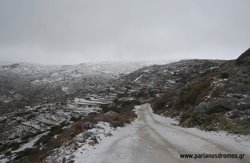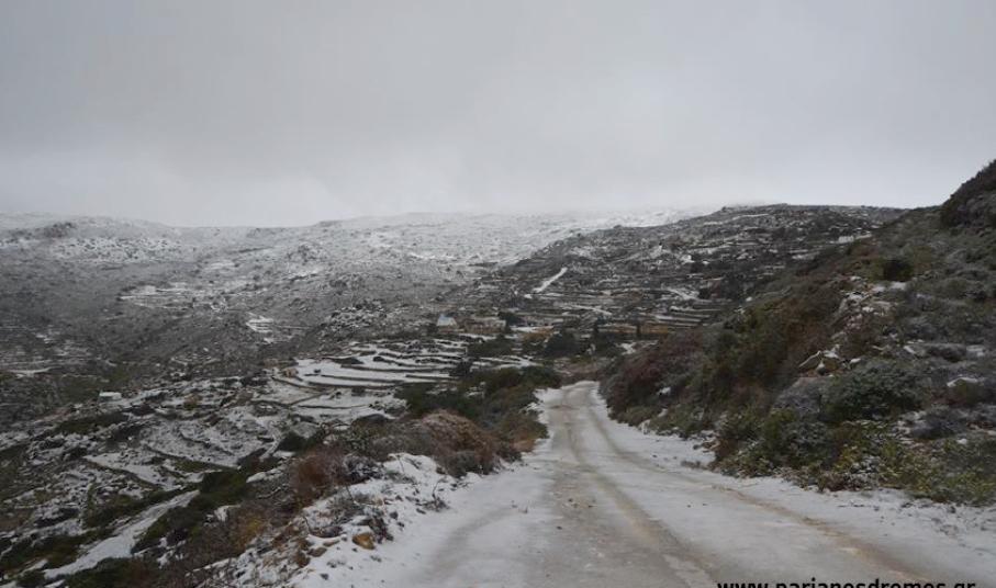 Νάξος και Πάρος τα πρώτα νησιά που είδαν να «ασπρίζουν» οι ορεινές τους περιοχές, ενώ χιόνι, περιορισμένης έντασης, αντίκρισε εχθές νωρίς το βράδυ και η Σύρος.