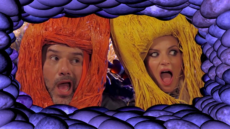 «Τους αντιλαμβάνονται σε μεγάλο βαθμό ακόμα και τα πιο μικρά παιδιά, επειδή ακριβώς έρχονται από πολύ νωρίς σε επαφή με την τεχνολογία, είτε αυτό λέγεται ίντερνετ, είτε iPad. Εμείς το χρησιμοποιούμε αυτό στο εικαστικό μέρος του έργου, στις βιντεοπροβολές, γιατί αν προσπαθήσεις να πεις κάτι στο παιδί ηθικοπλαστικά και κουνώντας το δάχτυλο, τότε αυτό γίνεται πιο αντιδραστικό. Όταν του το δίνεις μέσα από έναν τρόπο παρόμοιο της δικής του αισθητικής, σίγουρα θα πει υποσυνείδητα «ναι, μπορώ να το χρησιμοποιήσω, αλλά όχι να κάνω κατάχρηση αυτού». Και ειδικά στη σκηνή, όπου οι ήρωες πρέπει να ενωθούν μεταξύ τους, γιατί κινδυνεύουν να χάσουν και την υπόστασή τους, τα παιδιά συνειδητοποιούν πως τα πράγματα όντως είναι σοβαρά στην περίπτωση κατάχρησης του διαδικτύου. Μία πολύ ευχάριστη νότα μέσα στο έργο είναι και η βιντεοπροβολή της κ. Βίκυς Σταυροπούλου, η οποία είναι η Μάγισσα Στρίτζο, Στρίτζο που υπήρχε από την αρχαιότητα, αλλά μέσα στους αιώνες απορροφήθηκε και η ίδια από το διαδίκτυο έχει αποκοπεί από τα συναισθήματά της. Έτσι, οι ήρωες της φέρνουν καθρέφτη με την πραγματικότητα για να συνειδητοποιήσει ότι έχει χάσει τον εαυτό της».