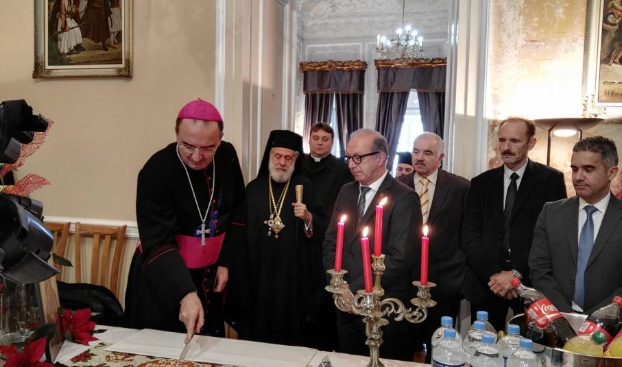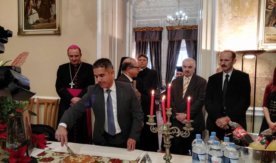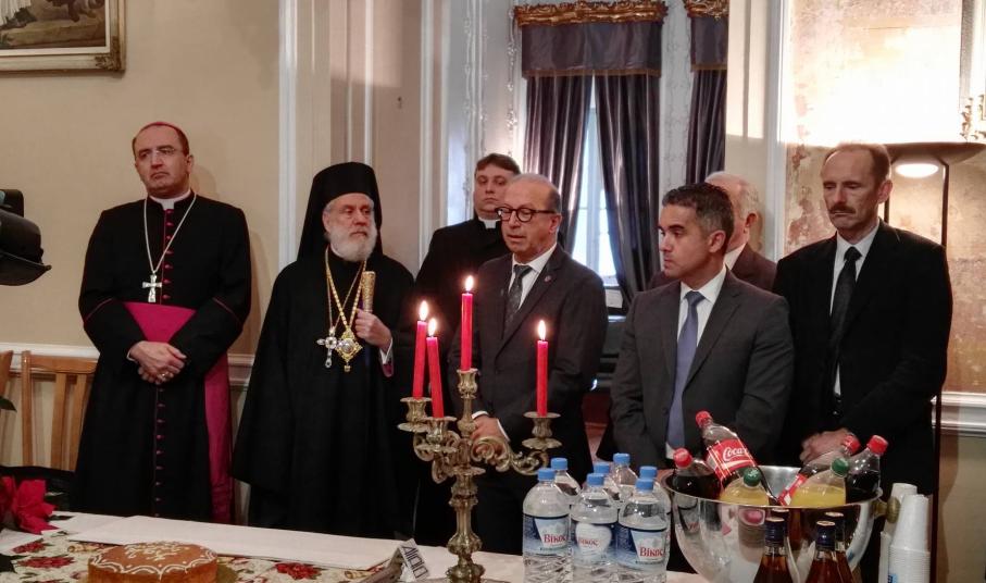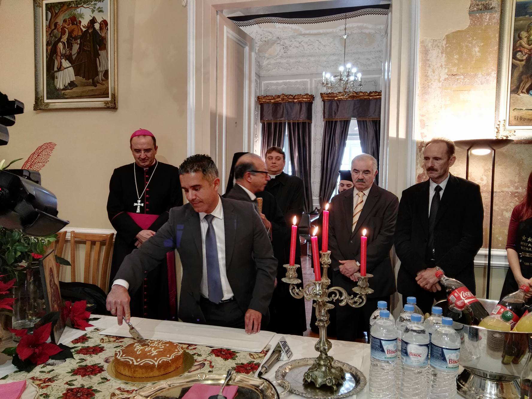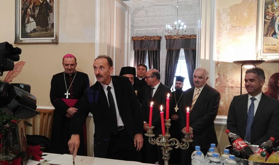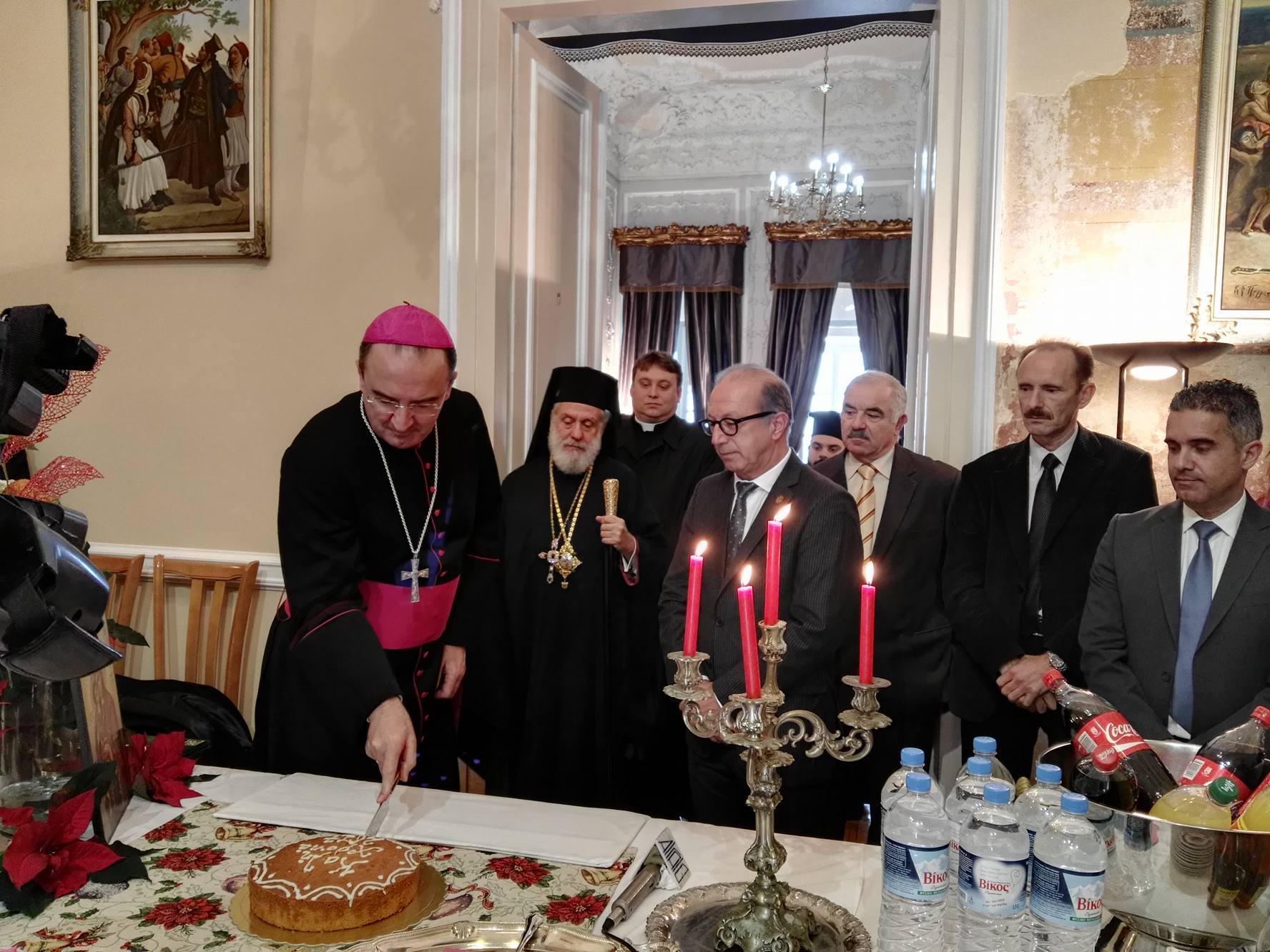 Παρουσία των Επισκόπων της Ορθόδοξης και της Καθολικής Εκκλησίας, του Σεβασμιωτάτου Μητροπολίτη Σύρου, κ. Δωροθέου Β΄ και του Σεβ. π. Πέτρου Στεφάνου αντίστοιχα, καθώς επίσης του Δημάρχου Σύρου – Ερμούπολης, Γιώργου Μαραγκού, του προέδρου του Επιμελητηρίου Κυκλάδων, Γιάννη Ρούσσου, αντιδημάρχων, περιφερειακών και δημοτικών συμβούλων και υπαλλήλων της Περιφέρειας, ο Αντιπεριφερειάρχης Κυκλάδων απηύθυνε ευχές προς όλους, δίνοντας έμφαση στο θέμα της νησιωτικότητας.