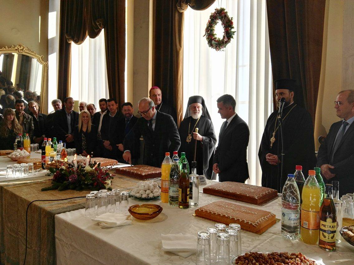 Διατυπώνοντας τον κυριότερο σκοπό της Δημοτικής Αρχής περί σταθερής προσπάθειας ανάπτυξης του νησιού σε όλα τα επίπεδα και βελτίωσης της καθημερινότητας των κατοίκων της, πραγματοποίησε την κοπή της αγιοβασιλιάτικης πίτας ο Δήμαρχος Σύρου – Ερμούπολης, Γιώργος Μαραγκός, κατόπιν της ευλογίας και των ευχών των δύο Επισκόπων του νησιού, της Ορθόδοξης και της Καθολικής Εκκλησίας.