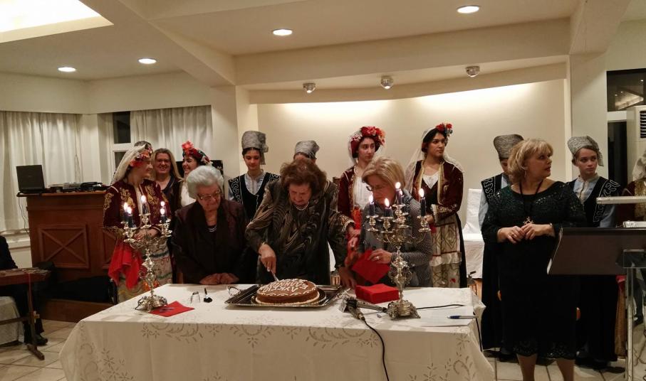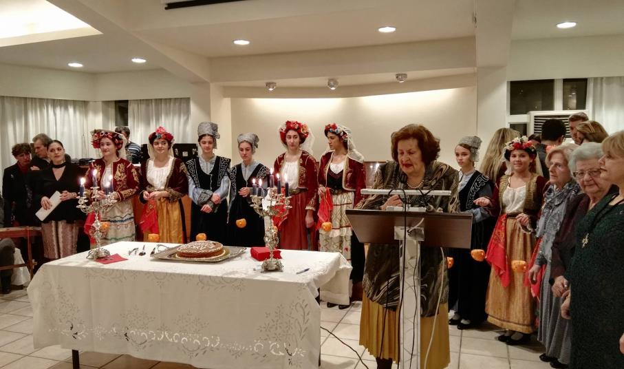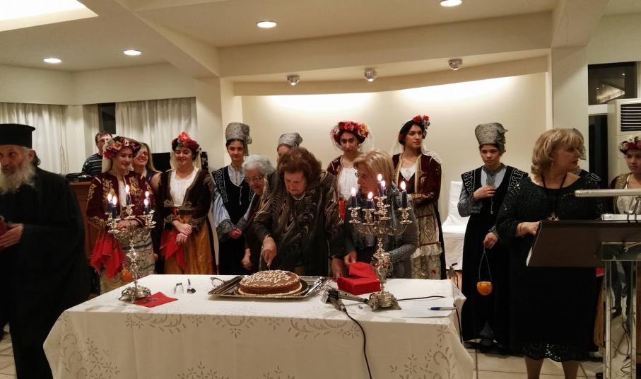 Κατόπιν της ευλογίας των δύο εκπροσώπων της Ορθόδοξης και της Καθολικής Εκκλησίας, η κ. Λιγοψυχάκη πλαισιωμένη από τα μέλη του ΔΣ του Λυκείου Ελληνίδων Σύρου έκοψε την πίτα, ευχαριστώντας το σύνολο των ανθρώπων που στηρίζουν τη δράση του.