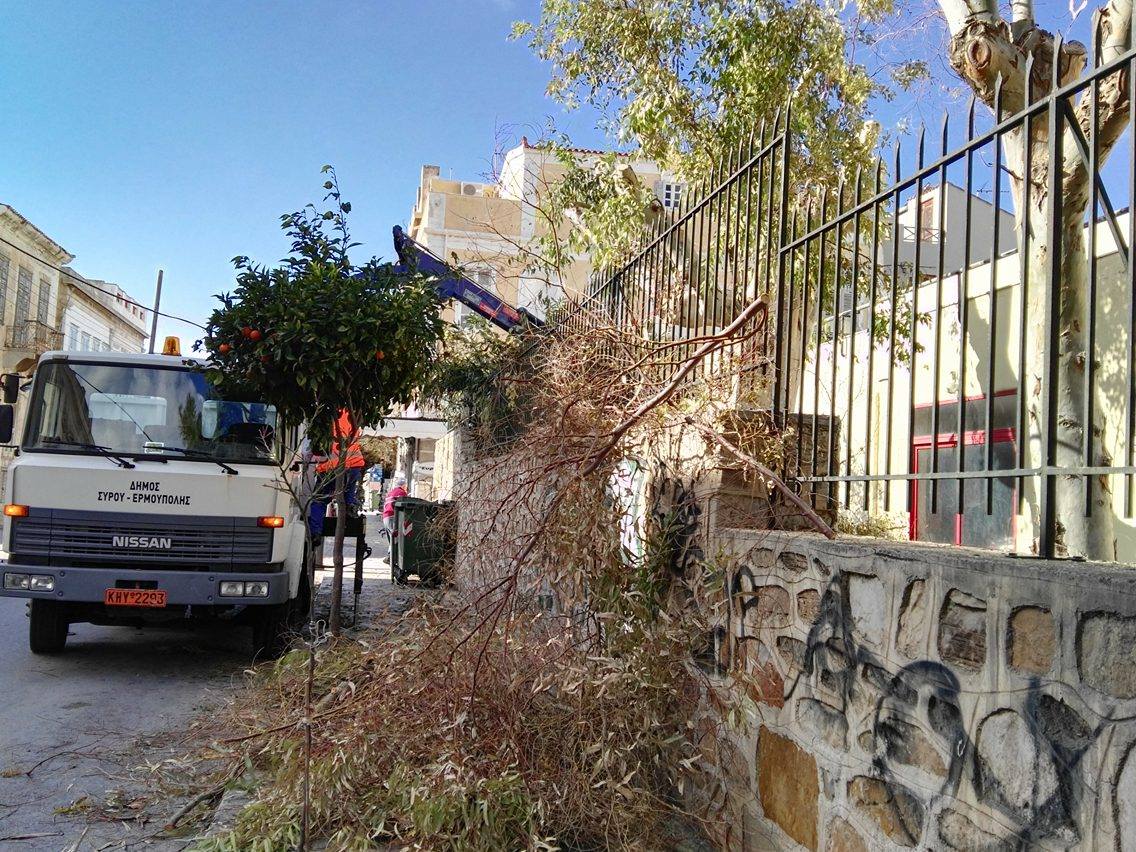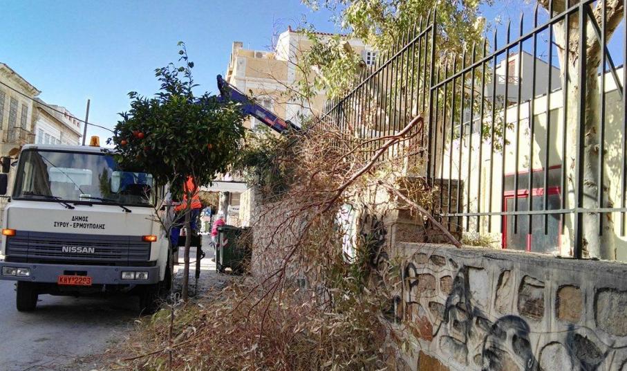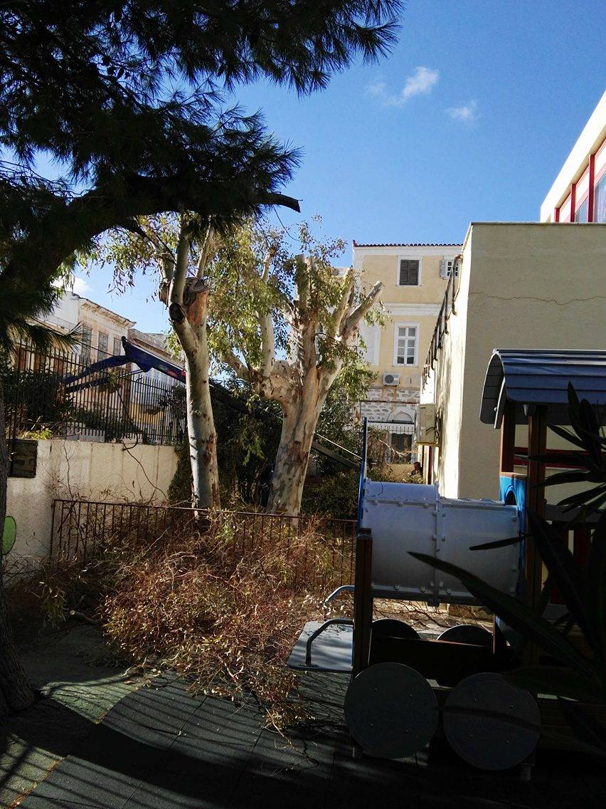Συγκεκριμένα, εργάτες από το αρμόδιο τμήμα μικρών έργων προχώρησαν σε κλάδεμα των μεγάλων δέντρων που βρίσκονται στον αύλειο χώρο που γειτνιάζει με τον χώρο αναψυχής και την αυλή του Παιδικού Σταθμού, προκειμένου αφενός, να καθαριστεί το εν λόγω τμήμα κι αφετέρου, να αποφευχθεί ενδεχόμενο ατύχημα, από την πτώση κλαδιών, εξαιτίας των έντονων καιρικών φαινομένων.