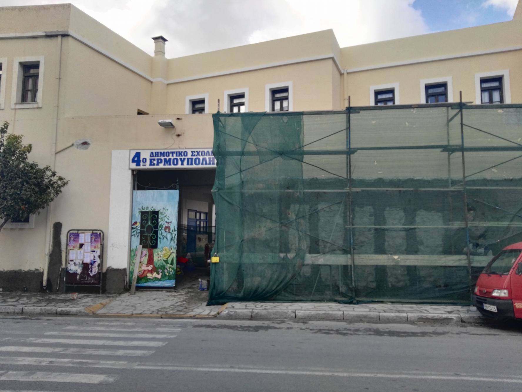 Ο κύκλος των παρεμβάσεων βελτίωσης των σχολικών κτιρίων του Δήμου Σύρου – Ερμούπολης συνεχίζεται από τη Δημοτική Αρχή και σύμφωνα με τις καταγεγραμμένες ανάγκες των Σχολικών Επιτροπών, με τις σχετικές εργασίες για το 4ο Δημοτικό Σχολείο Ερμούπολης να βρίσκονται σε εξέλιξη.