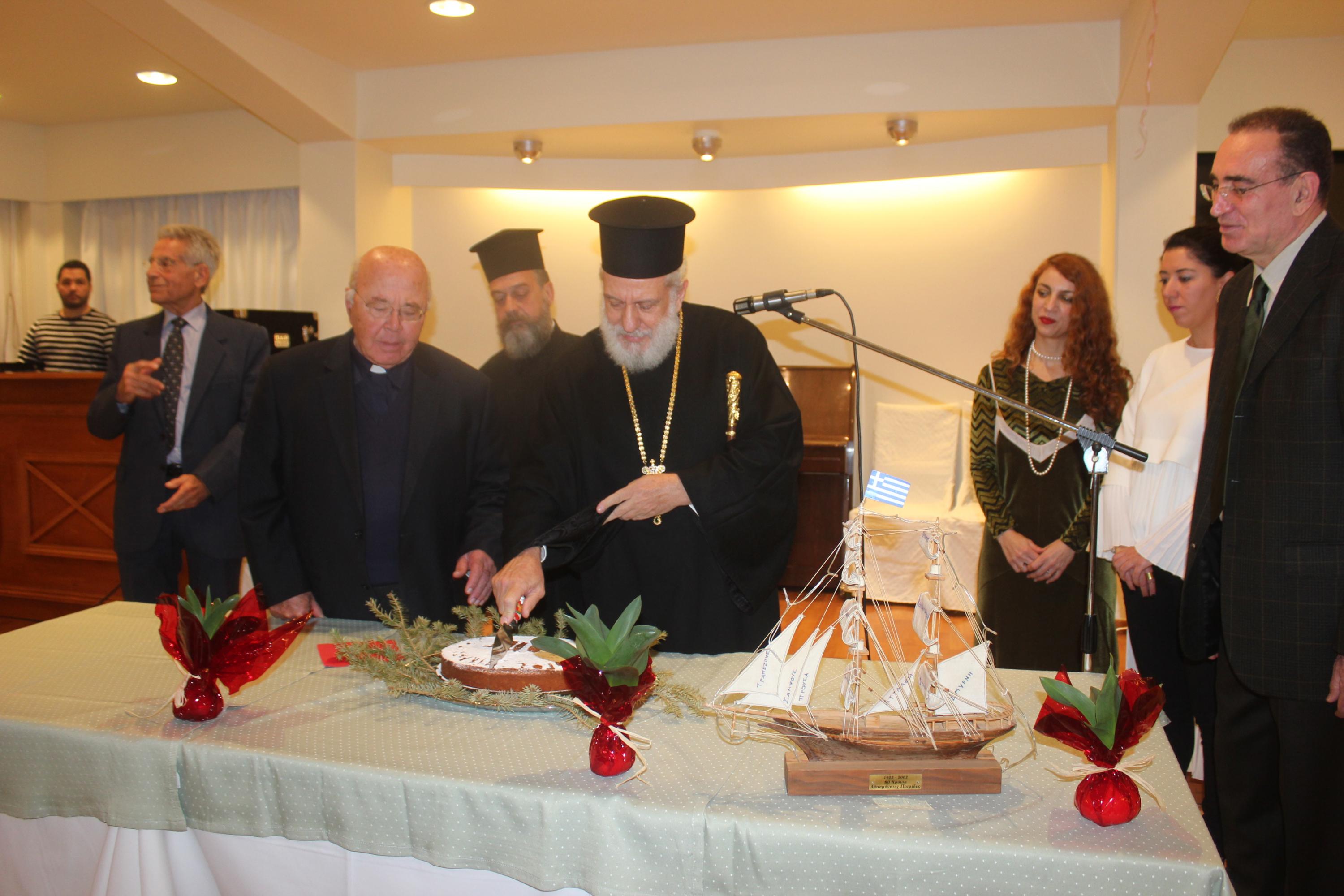 Αμέσως μετά, ακολούθησαν κάλαντα από διάφορες περιοχές τις Μικράς Ασίας που έψαλλαν κυρίες του Συλλόγου υπό την καθοδήγηση της Έλσας Χαραλάμπους και με τη συνοδεία παραδοσιακών οργάνων. Η εκδήλωση ολοκληρώθηκε με την κοπή της πρωτοχρονιάτικης πίτας από τον Σεβασμιώτατο Μητροπολίτη Σύρου κ. Δωρόθεο Β’ και τον βικάριο της Καθολικής Εκκλησίας π. Αντώνιο Βουτσίνο.