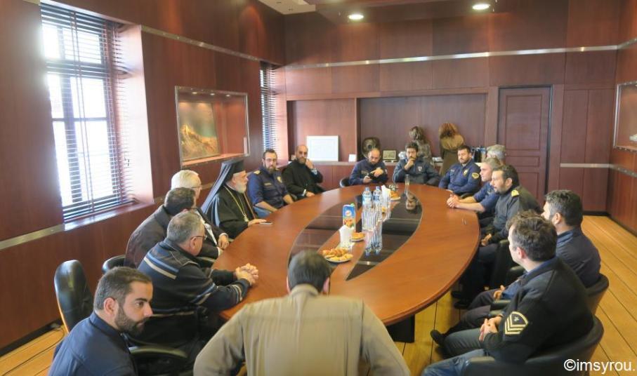 Ακολούθως, επεσκέφθη επισκευαζόμενο πλοίο Συριανού Πλοιοκτήτη και ευχήθηκε στον Πλοίαρχο και το Πλήρωμά του.
