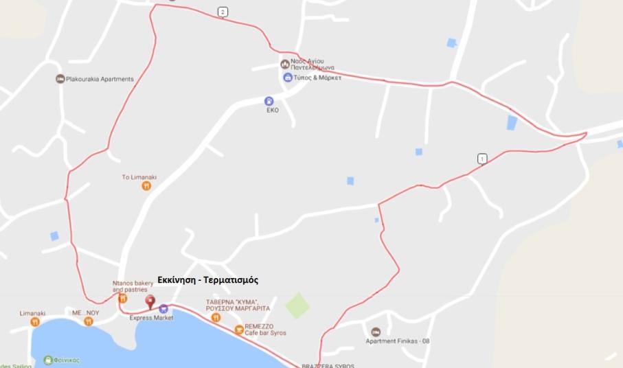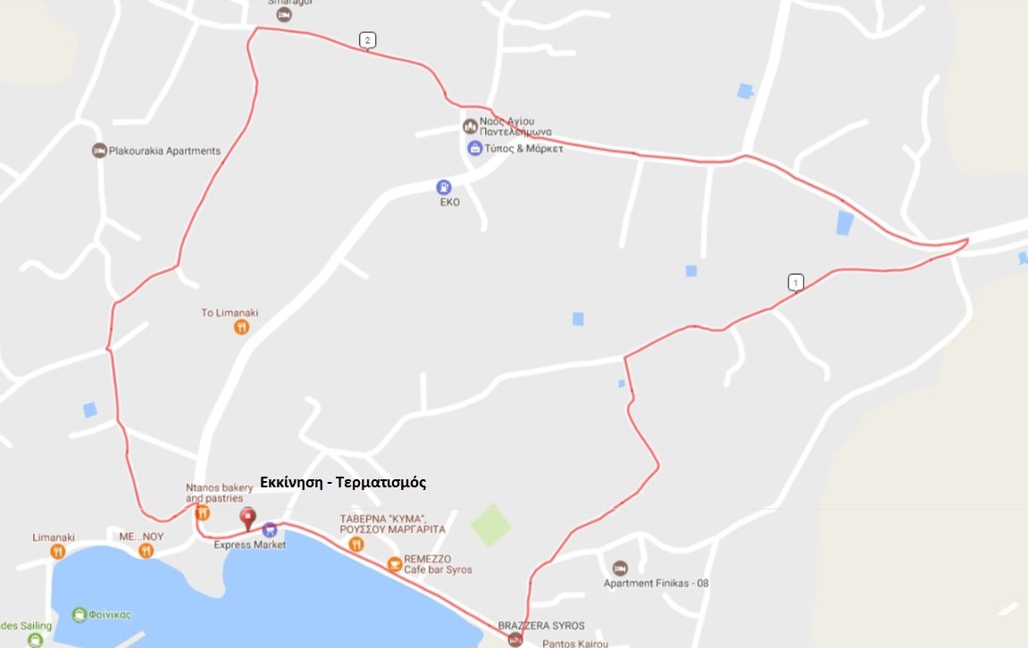 ΕΚΚΙΝΗΣΗ και ΤΕΡΜΑΤΙΣΜΟΣ: Πλατεία Φοίνικα στην παραλία του Φοίνικα Σύρου